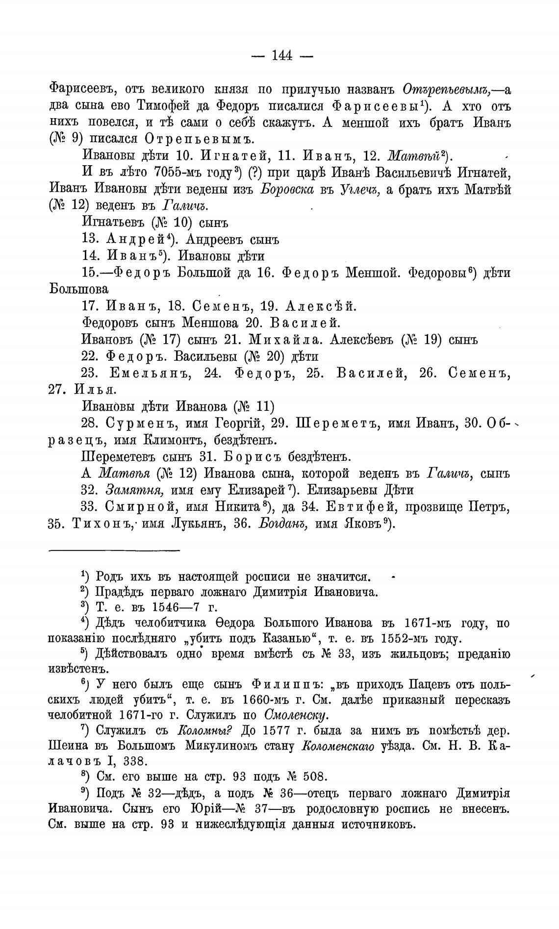 два сына ево Тимофей да Федоръ писалися Фарисеев ы 1). А хто отъ