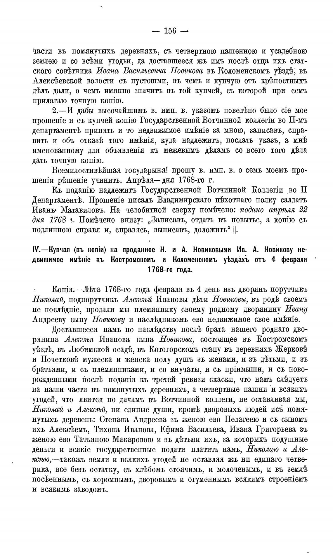 1У.—Купчая (въ на проданное Н. и А. Новиковыми Ив. А. Новикову не-