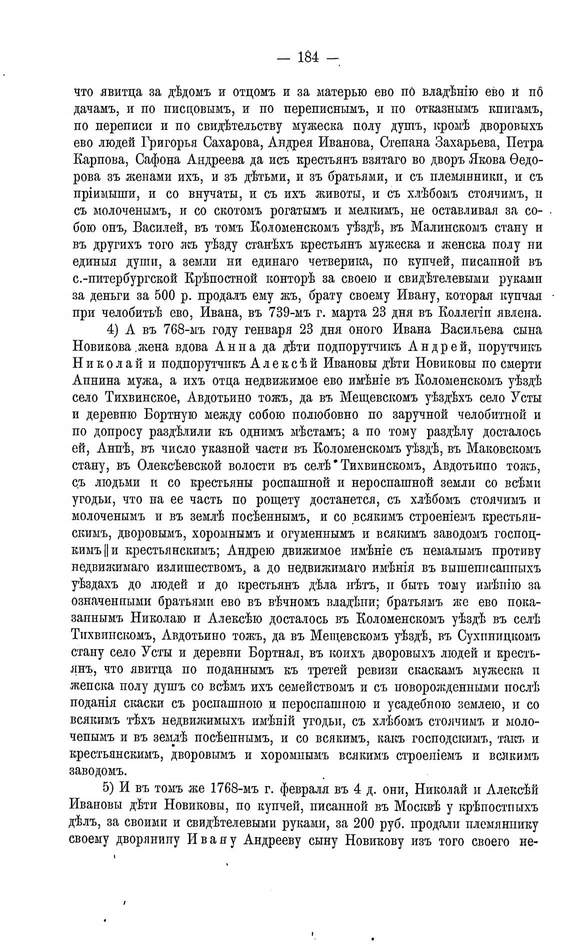 Ивановы Д'ђти Новиковы, по купчей, писанной въ Москвгђ у кр'ђпостпыхъ