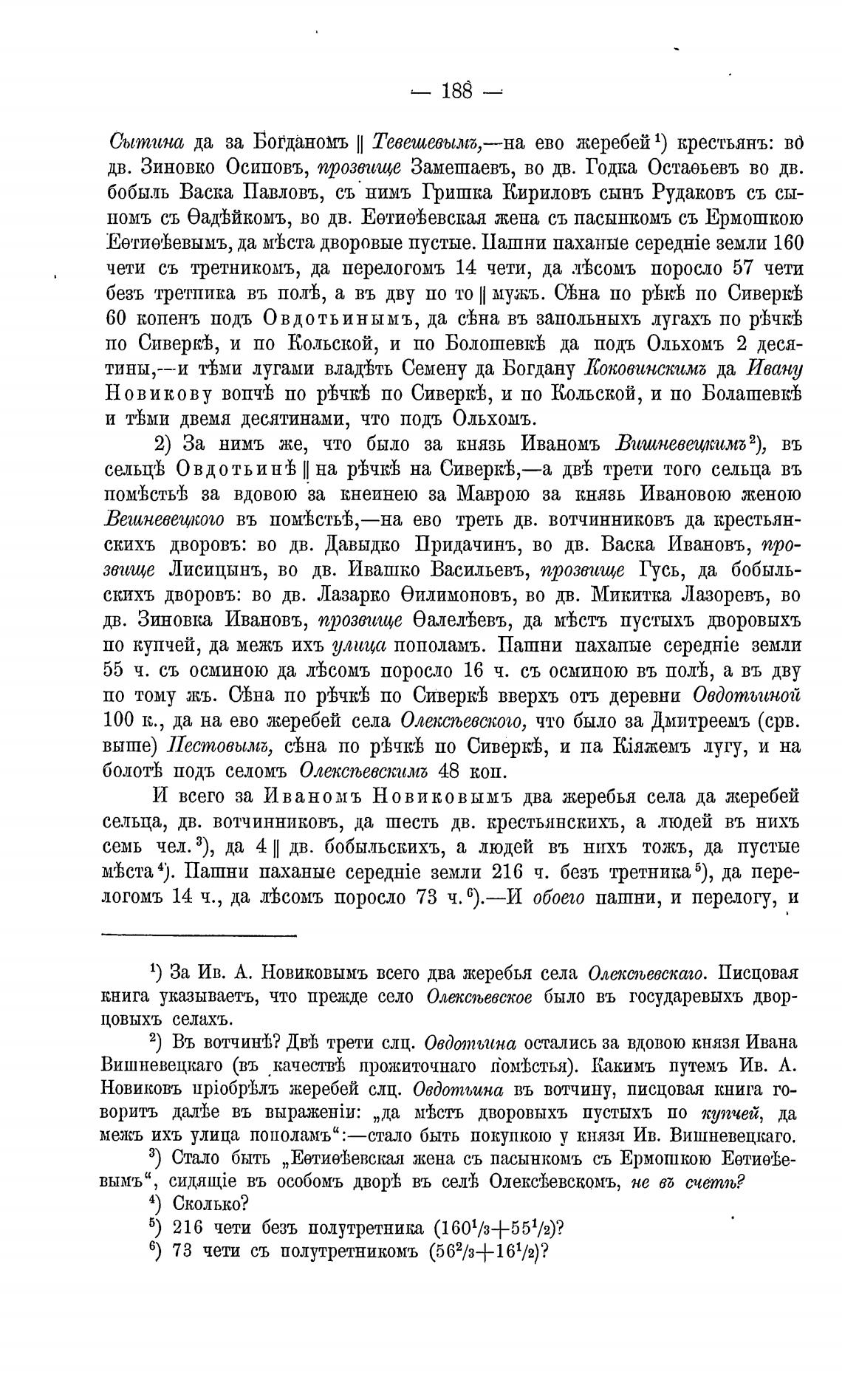 1) За Ив. А. Новиковымъ всего два жеребья села Олексп,евскаго. Писцовая