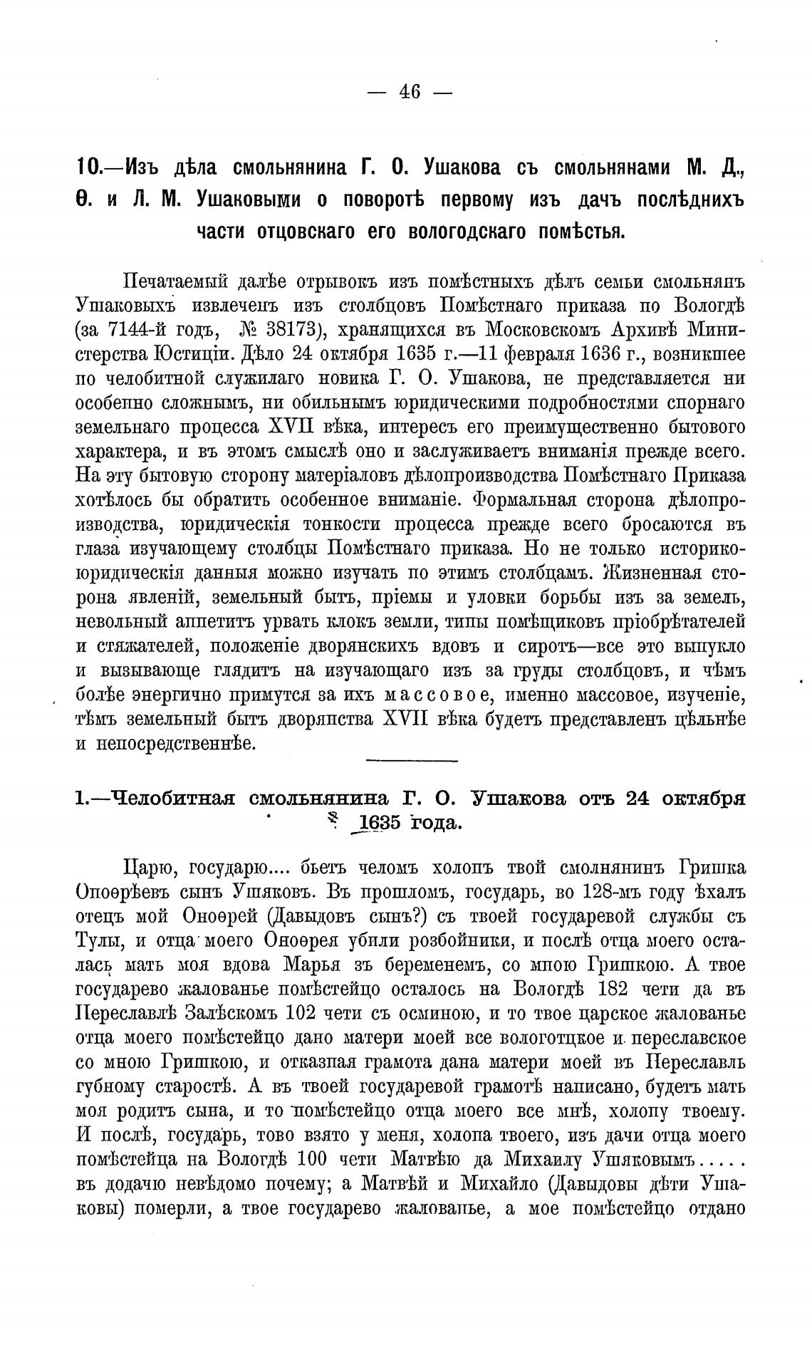 по челобитной служилаго новика Г. О. Ушакова, не представляется ни