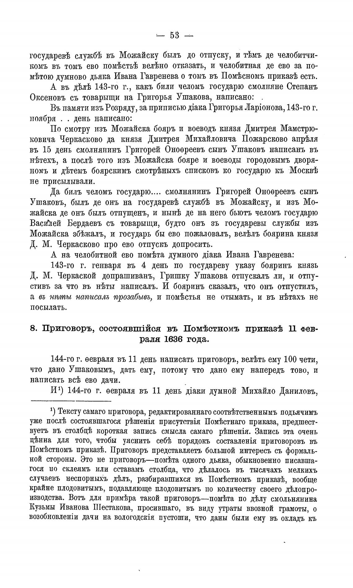 1) Тексту самаго приговора, редактированнаго соотв±тственнымъ подьячимъ