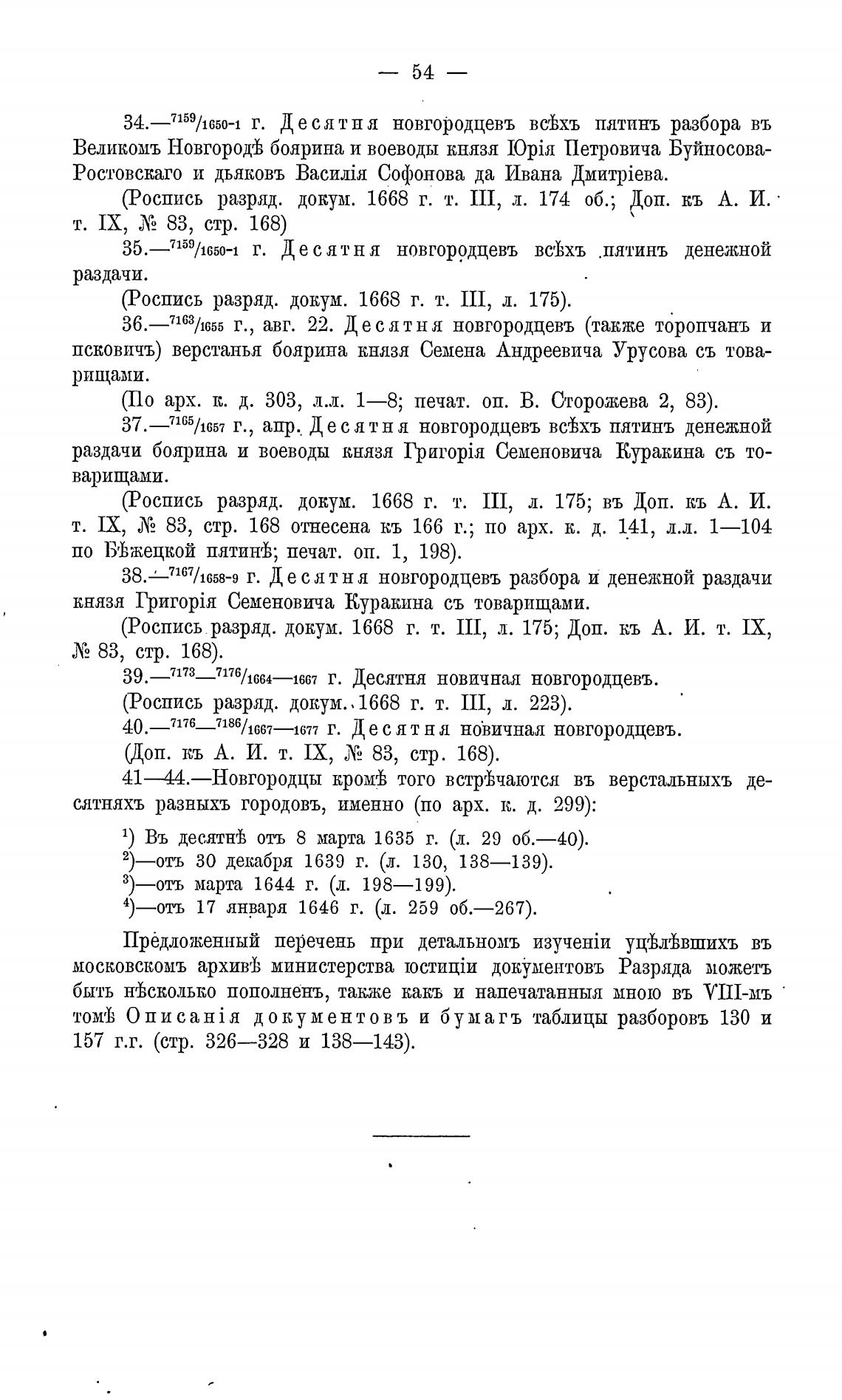 41—44.—Новгородцы кромгћ того встргђчаются въ верстальныхъ де-