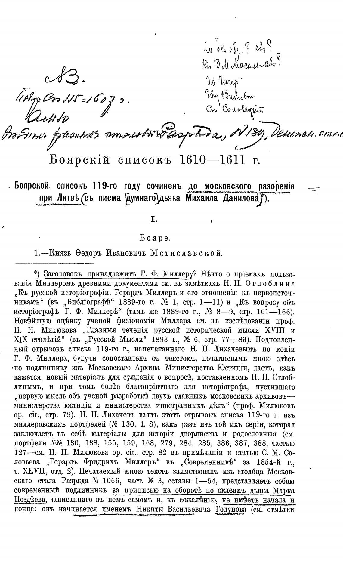 Миллеромъ древними документами см. въ зам'Ьткахъ Н. Н. Ог л об л и н а