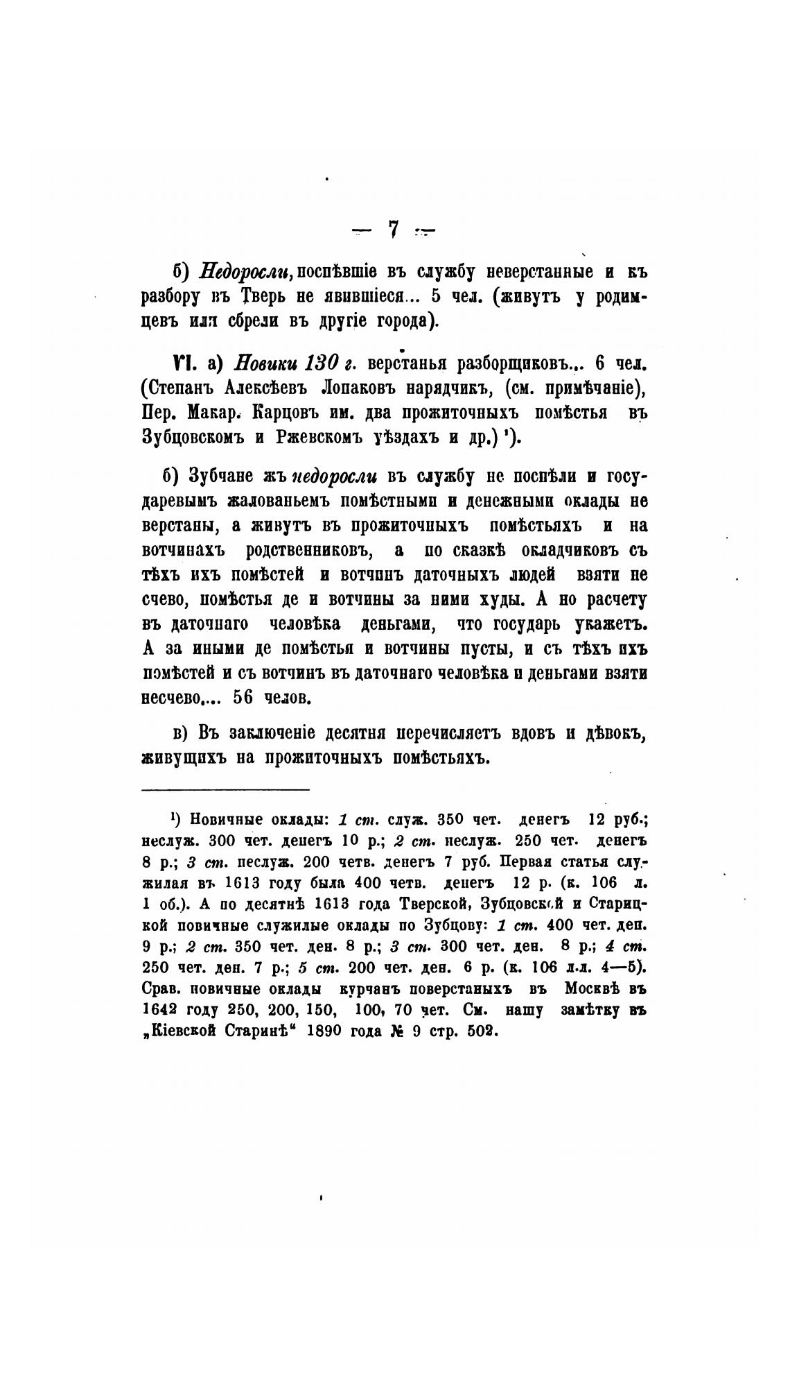 кой повичные служилые оклады по Зубцову: 1 ст. 400 чет. дев.