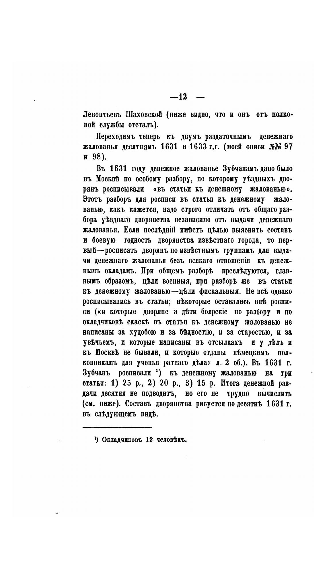 Въ 1631 году денежное жиованье Зубчанамъ дано был