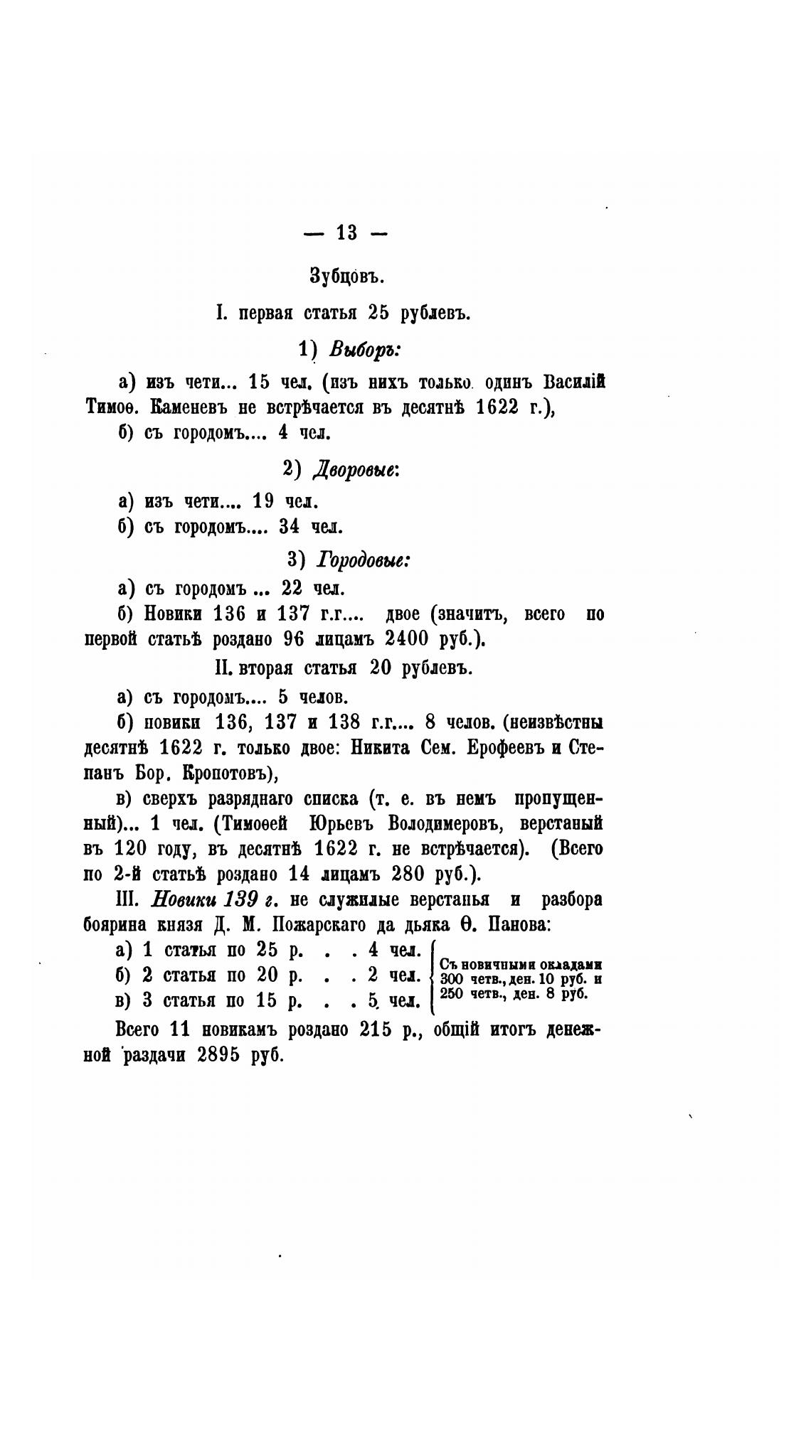 Всего 11 новикамъ роздано 215 р., итогъ денеж-