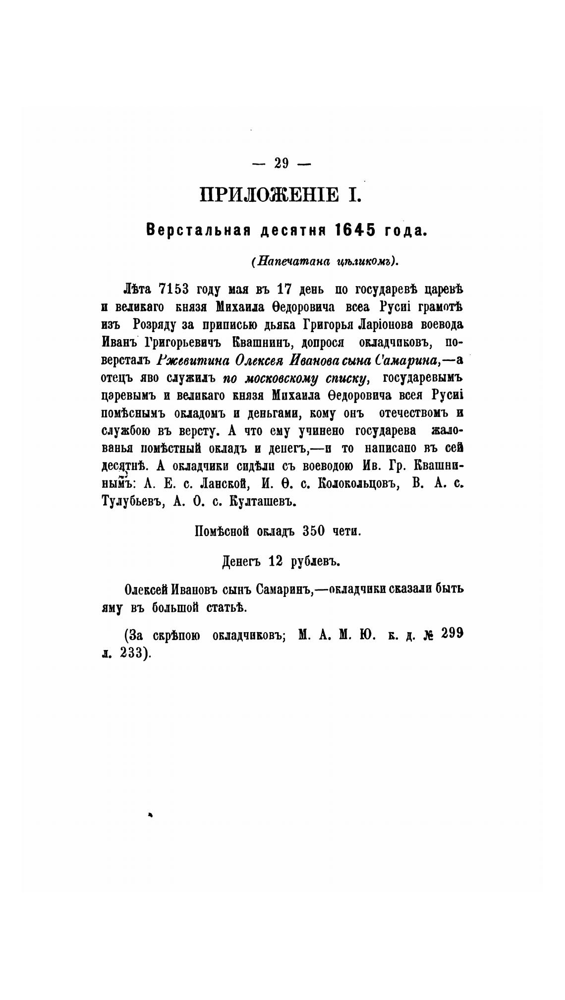 Верстальная десятня 1645 года.
