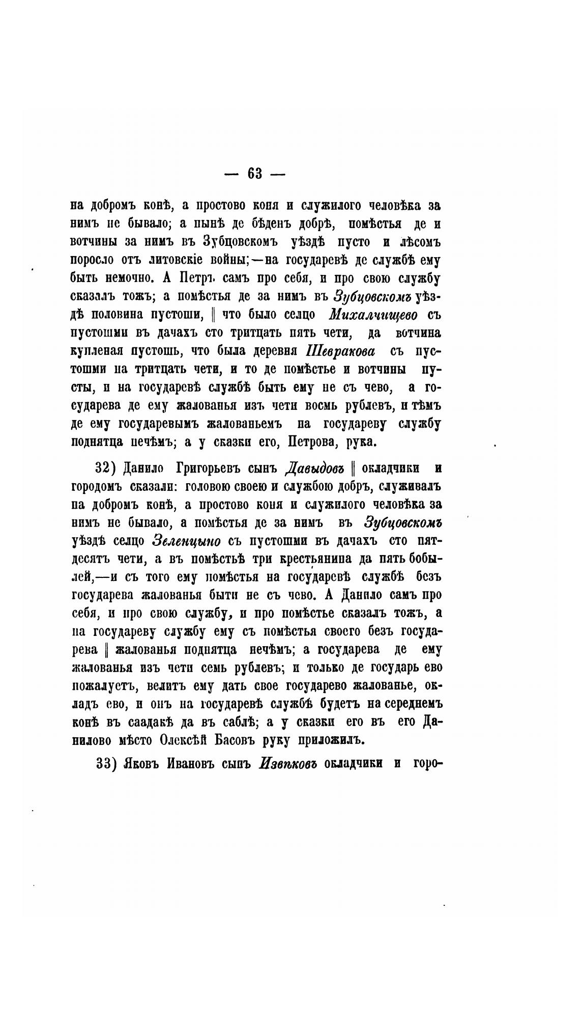 нимъ не бывало, а помВстья де за нимъ въ Зубцовскожъ