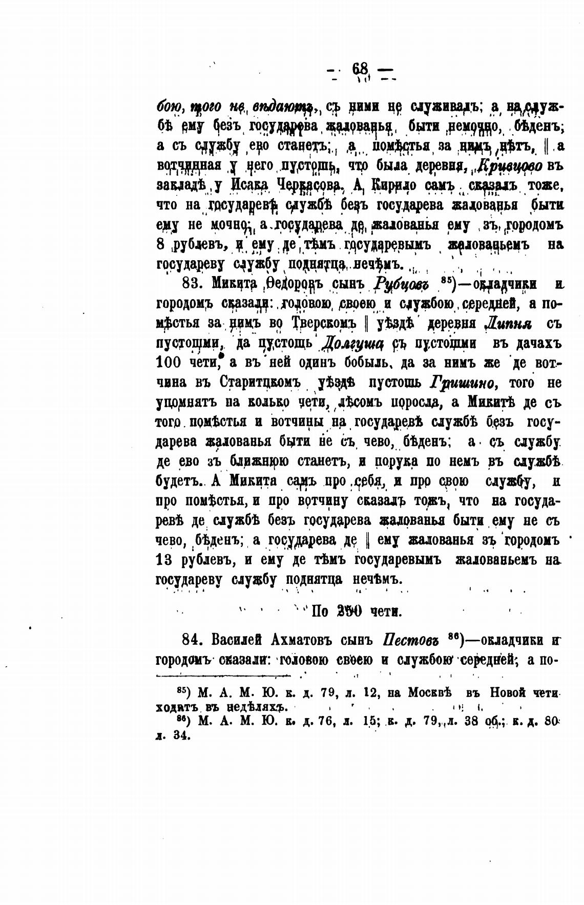 85) М. А. М. Ю. в. д. 79, л. 12, на Мосвй въ Новой чети.