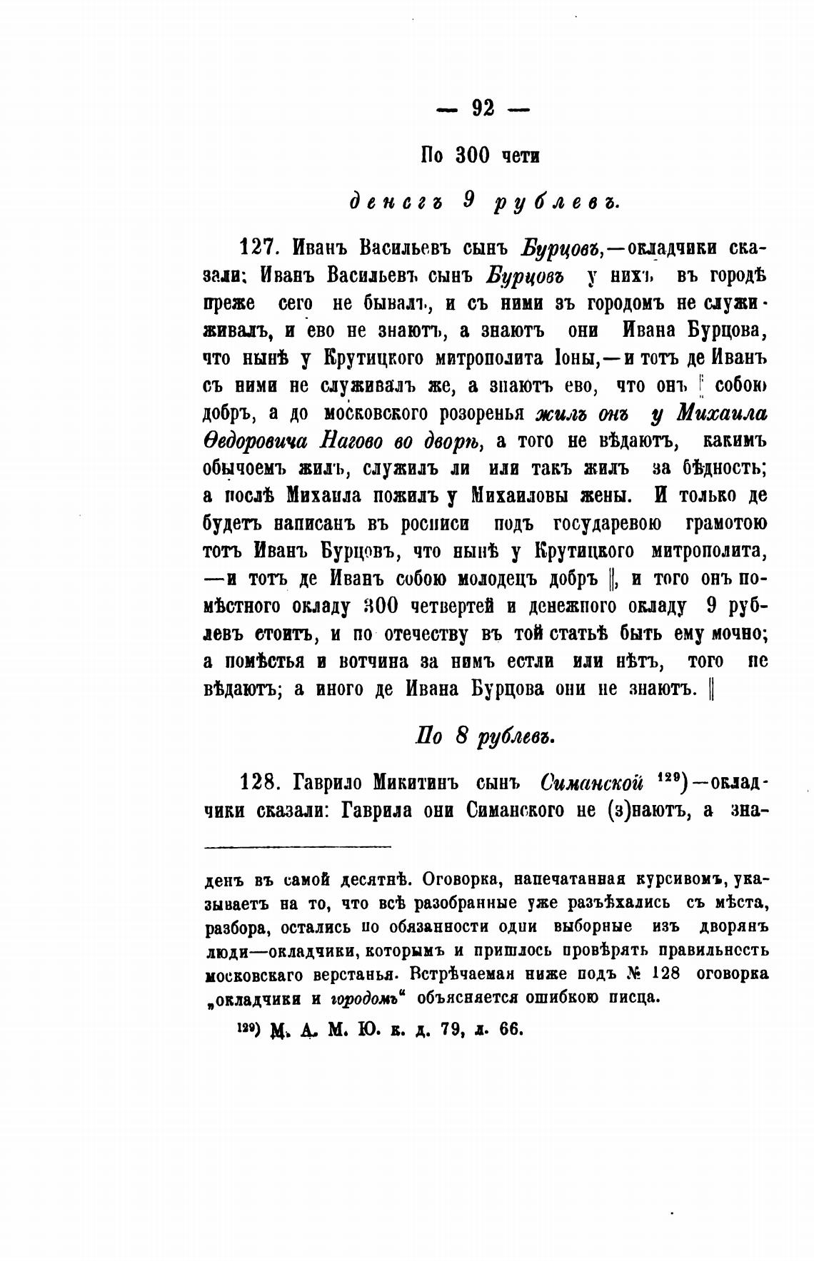 московскаго верстаньа. ВстрТчаеман ниже подъ 128 оговорка