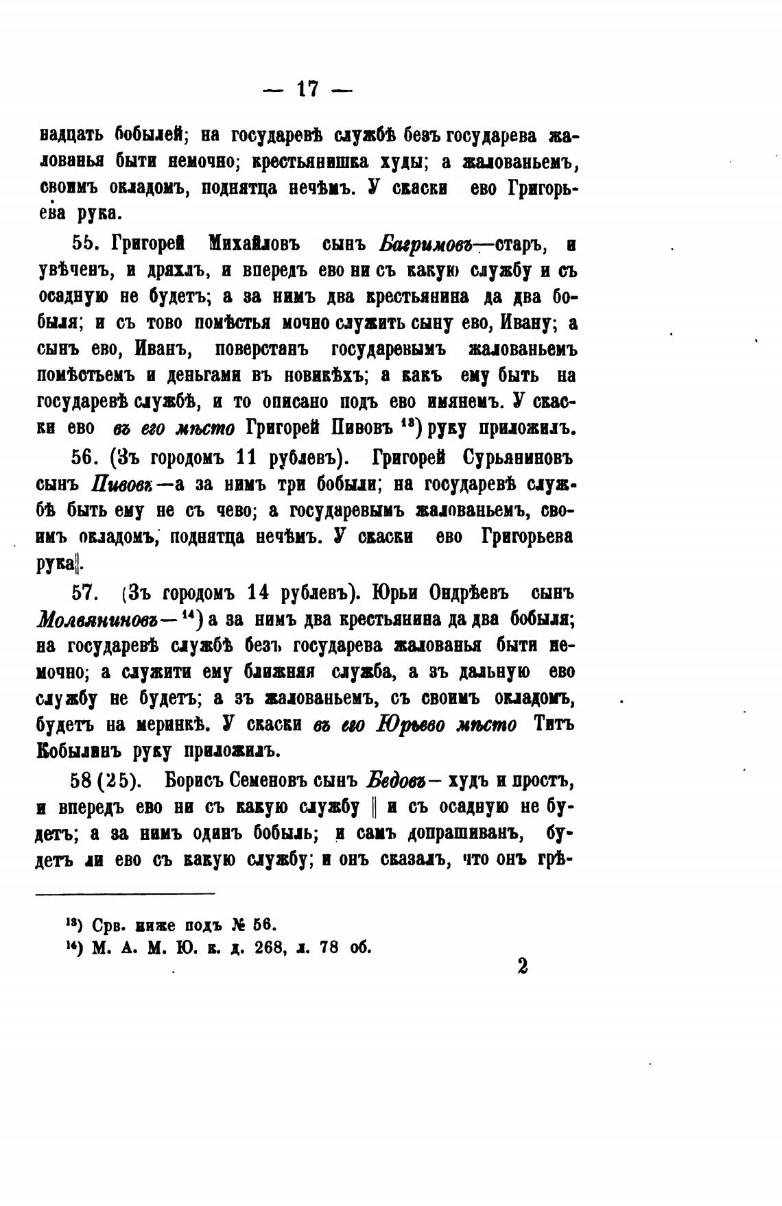 Молмниноп— 14) а за нимъ два крестьянина да два бобыля;