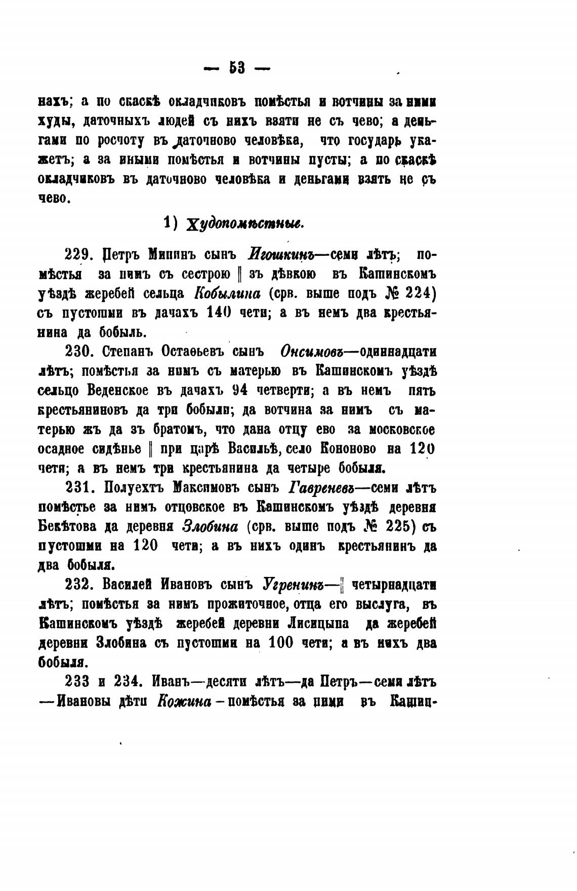крестьяниновъ да три бобыдп•, да вотчина за нимъ съ ма-