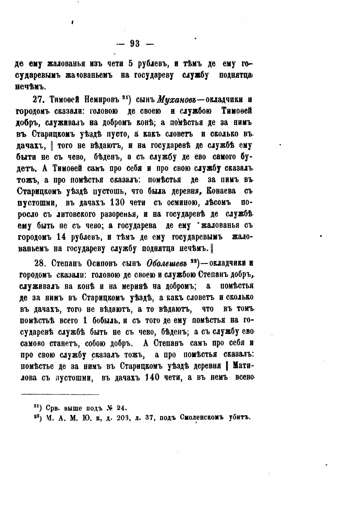 22) М. А. М. Ю. к, д. 203, л. 37, подъ Смоленсвомъ убить.