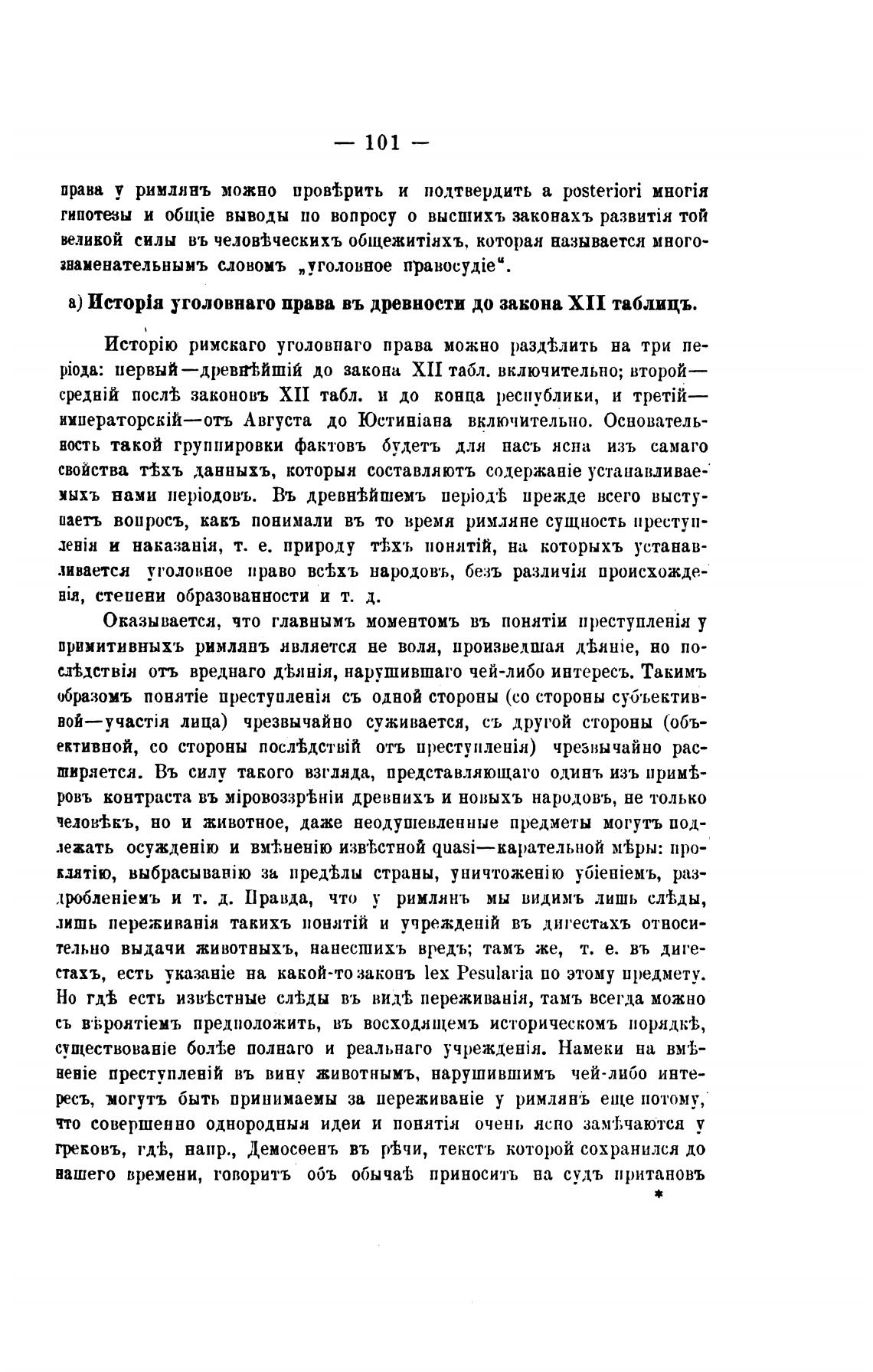 а) Истор1а уголовнаго права въ древности до закона XII таблицъ.
