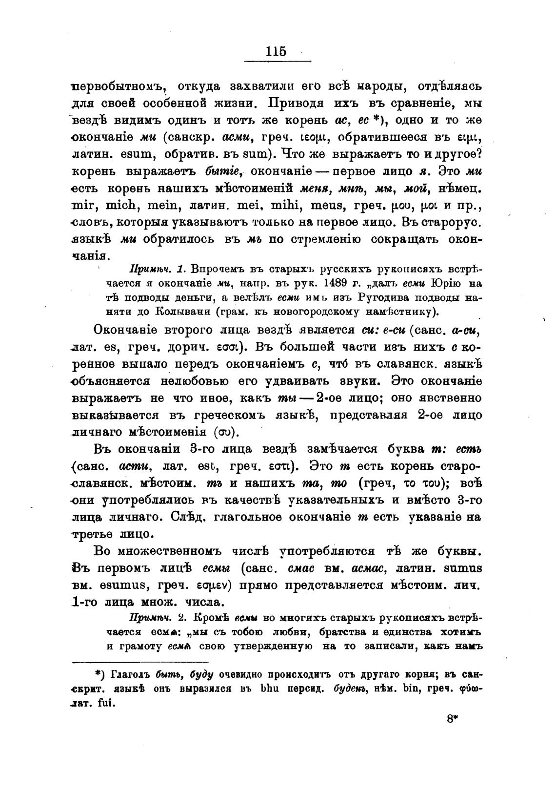 Въ первомъ лиц% есмы (санс. смас вм. асмас, датин. sumus