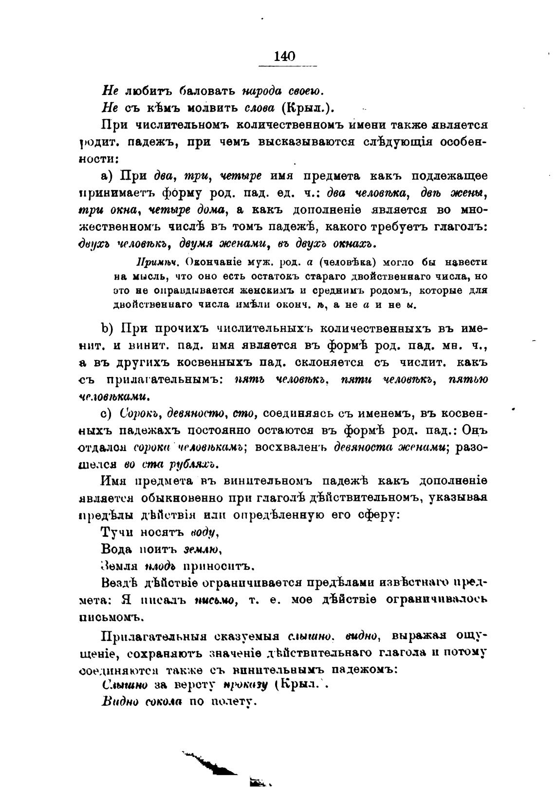 ныхъ падежахъ постоянно остаются въ формеЬ род. пад.: Онъ