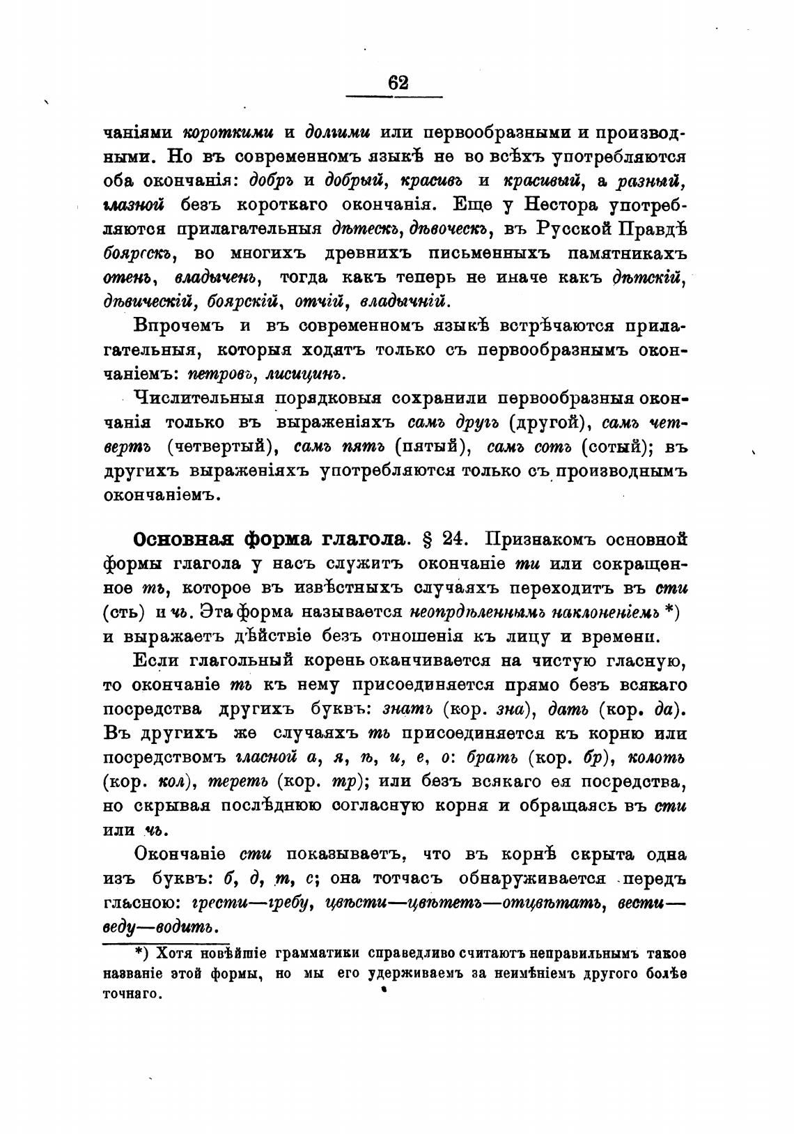 Основная форма глагола. S 24. Признакомъ основной