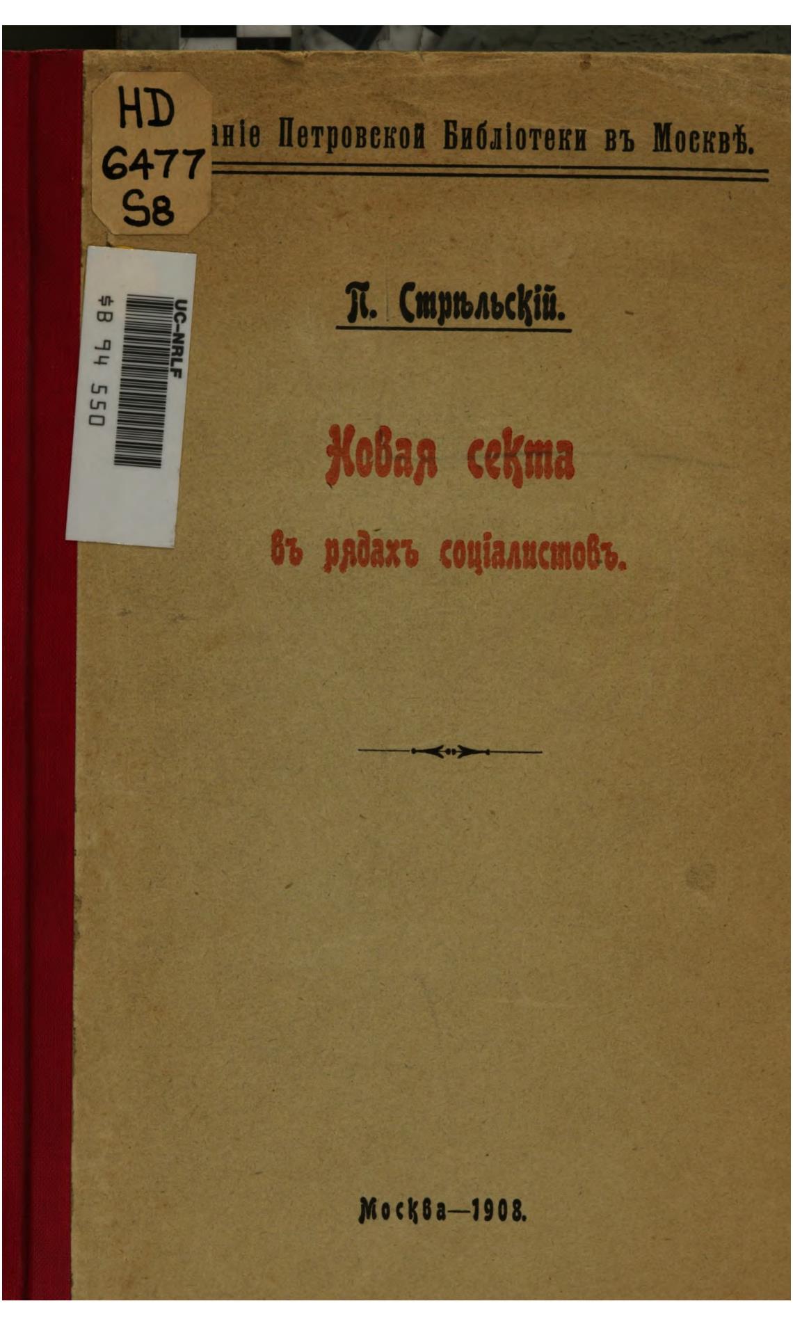 Новая секта в рядах социалистов. - Стрельский П.