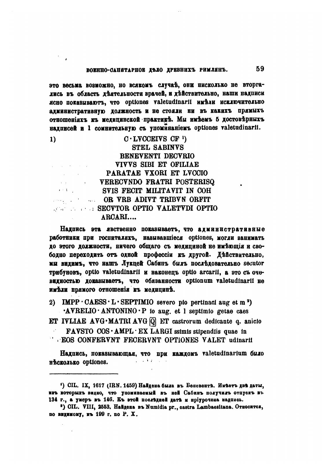 Надпись, повввывающаа, что при важдомъ valetudinarium было