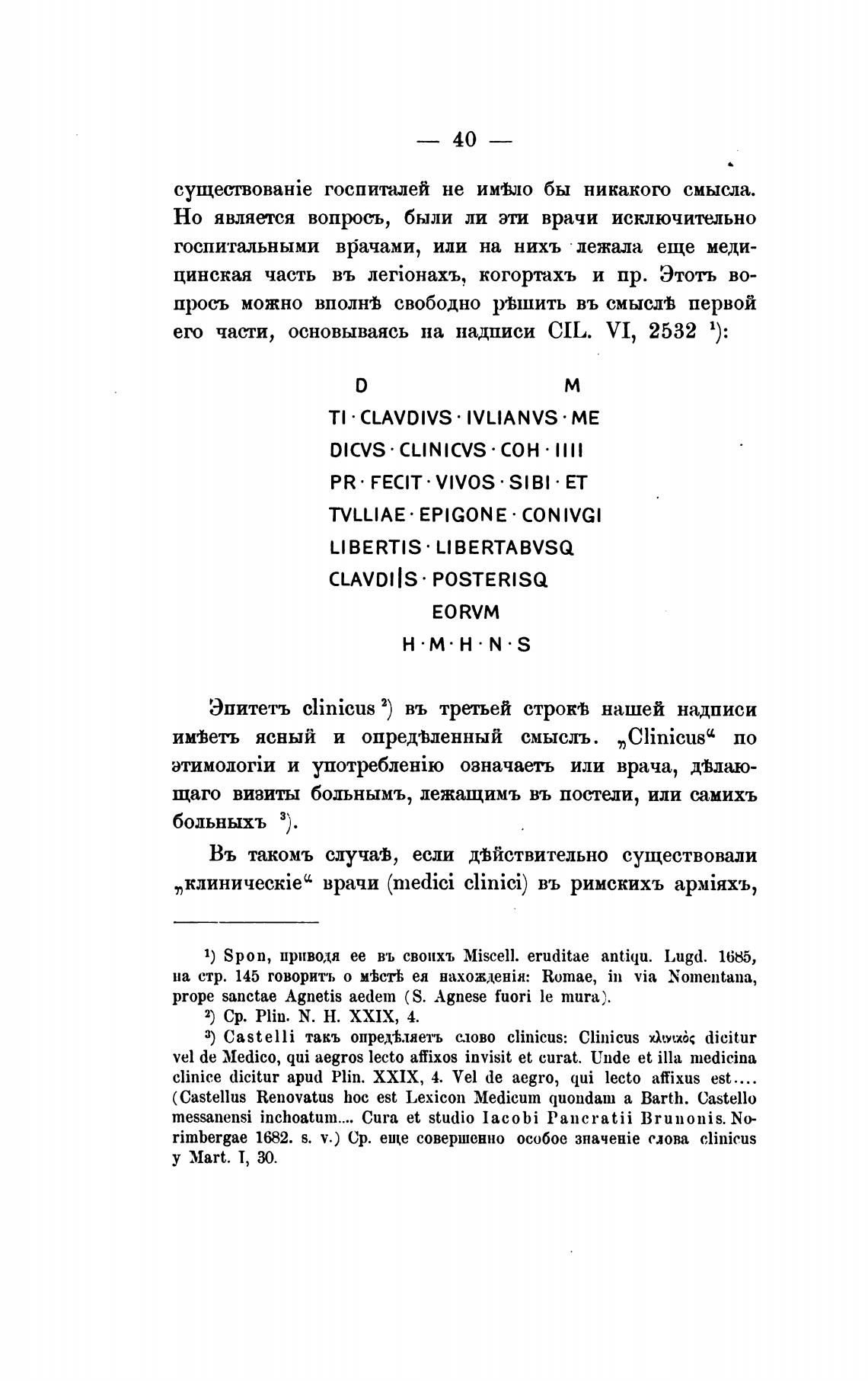 Эпитетъ clinicus 2) въ третьей строкеЬ нашей надписи
