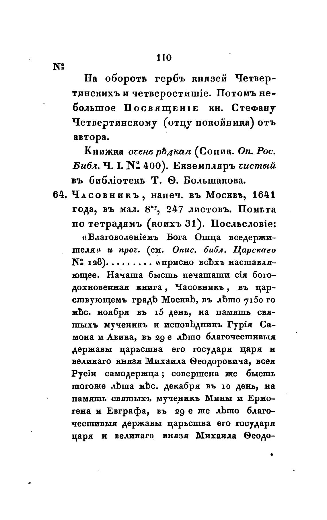 Библ. Ч. 1. 400). Екземпларъ систый