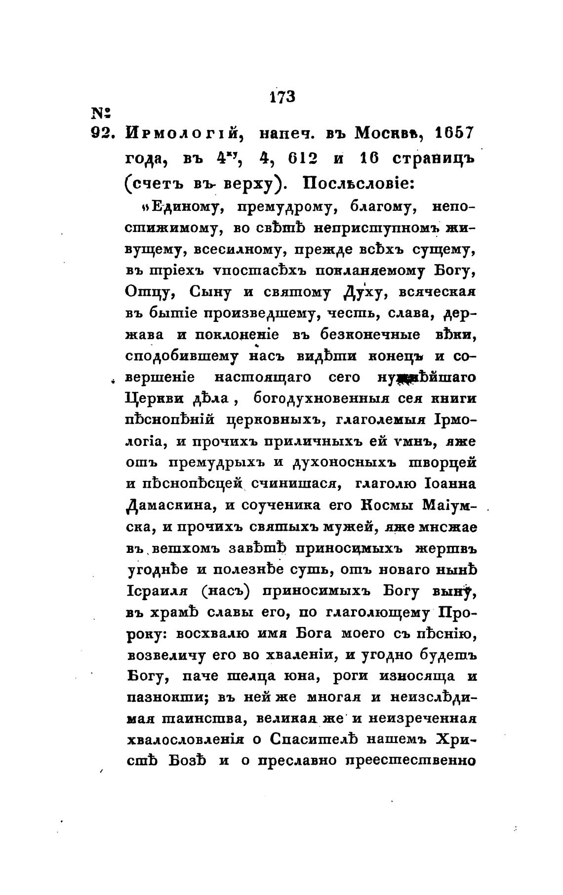 92. ИРМОЛОГIЙ, напеч. въ МОСНВВ, 1657