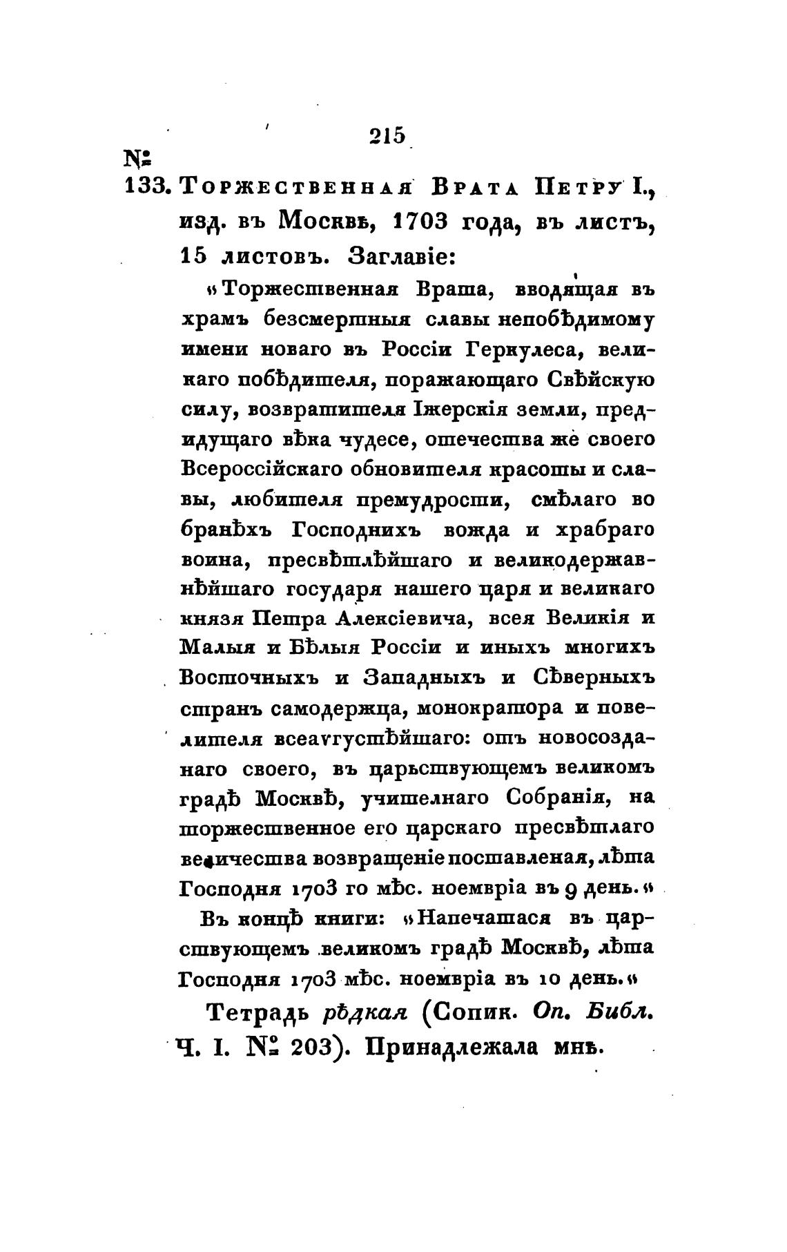 изд. въ Москвь, 1703 года, въ листъ,