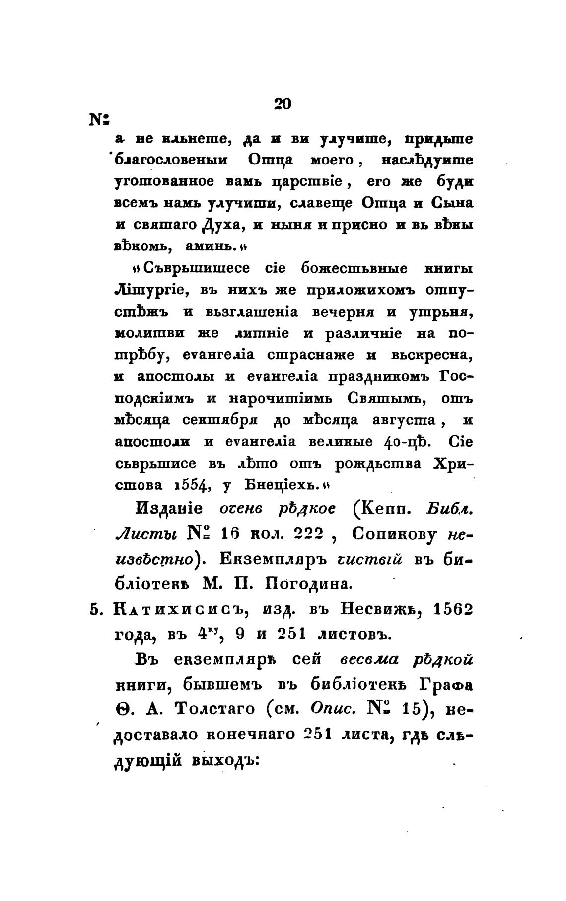 5. НА ТИХИ СИСЬ, изд. въ Несвижь, 1562