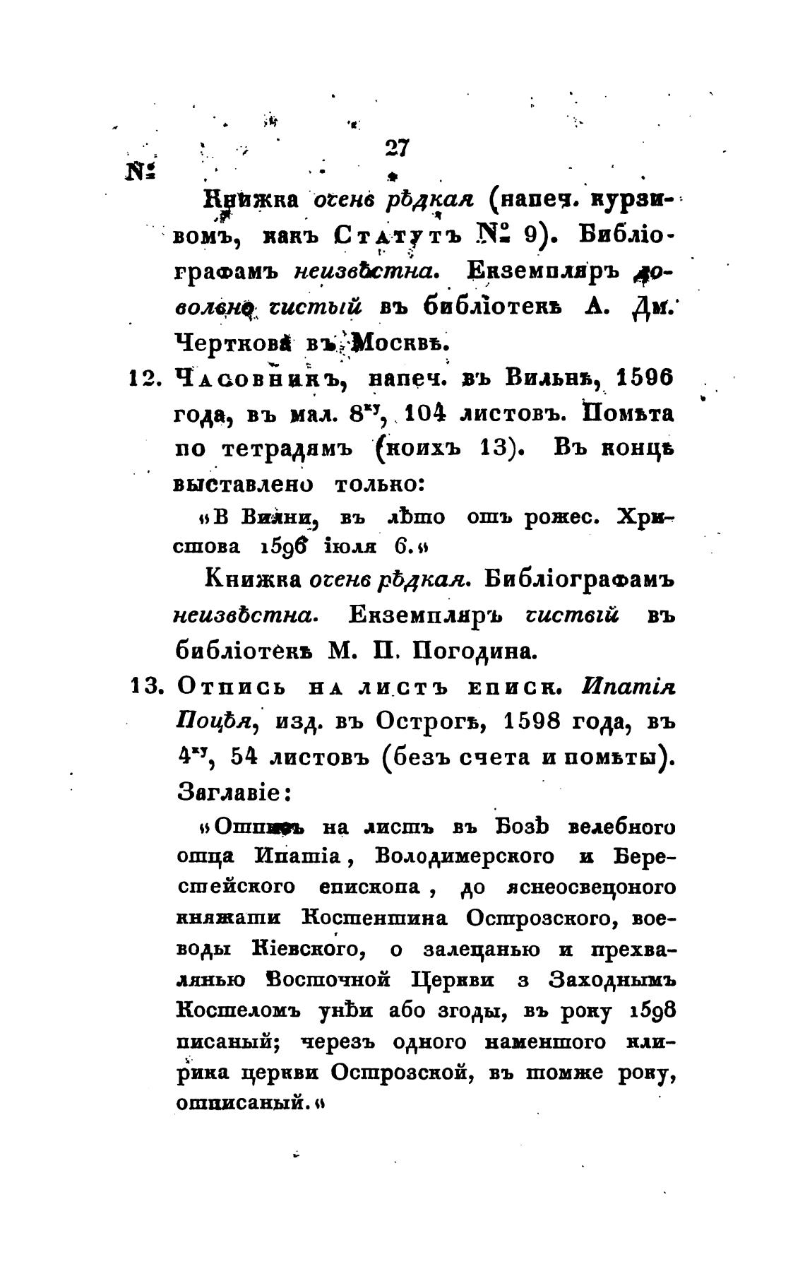 12. ЧАСОВНИКЪ, напеч. въ Вильнь, 1596