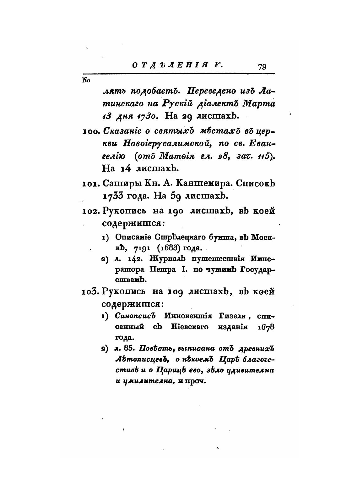 101. Сатиры Кн. А. Кантемира. СписокЪ
