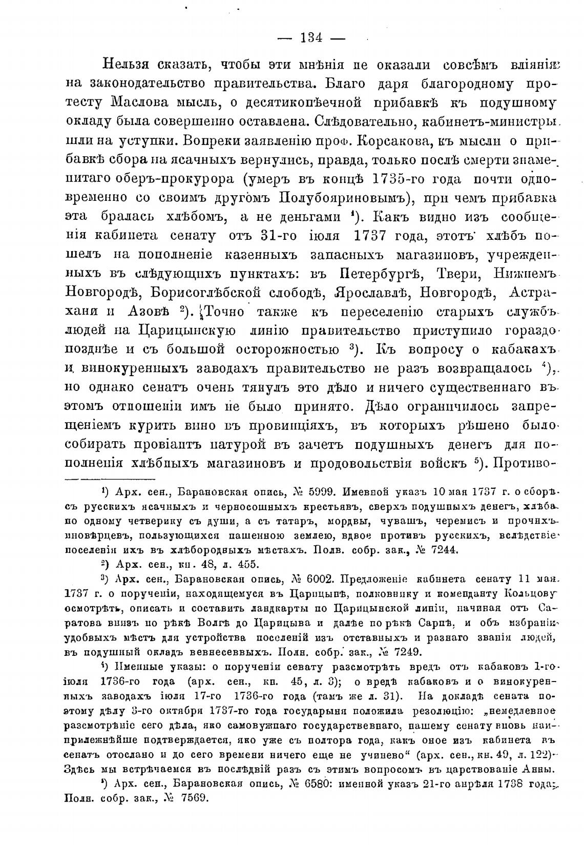 јюдя 1736-го года (арх. сен., кв. 45, л. З); о вредЈ кабаковъ и о винокурен—