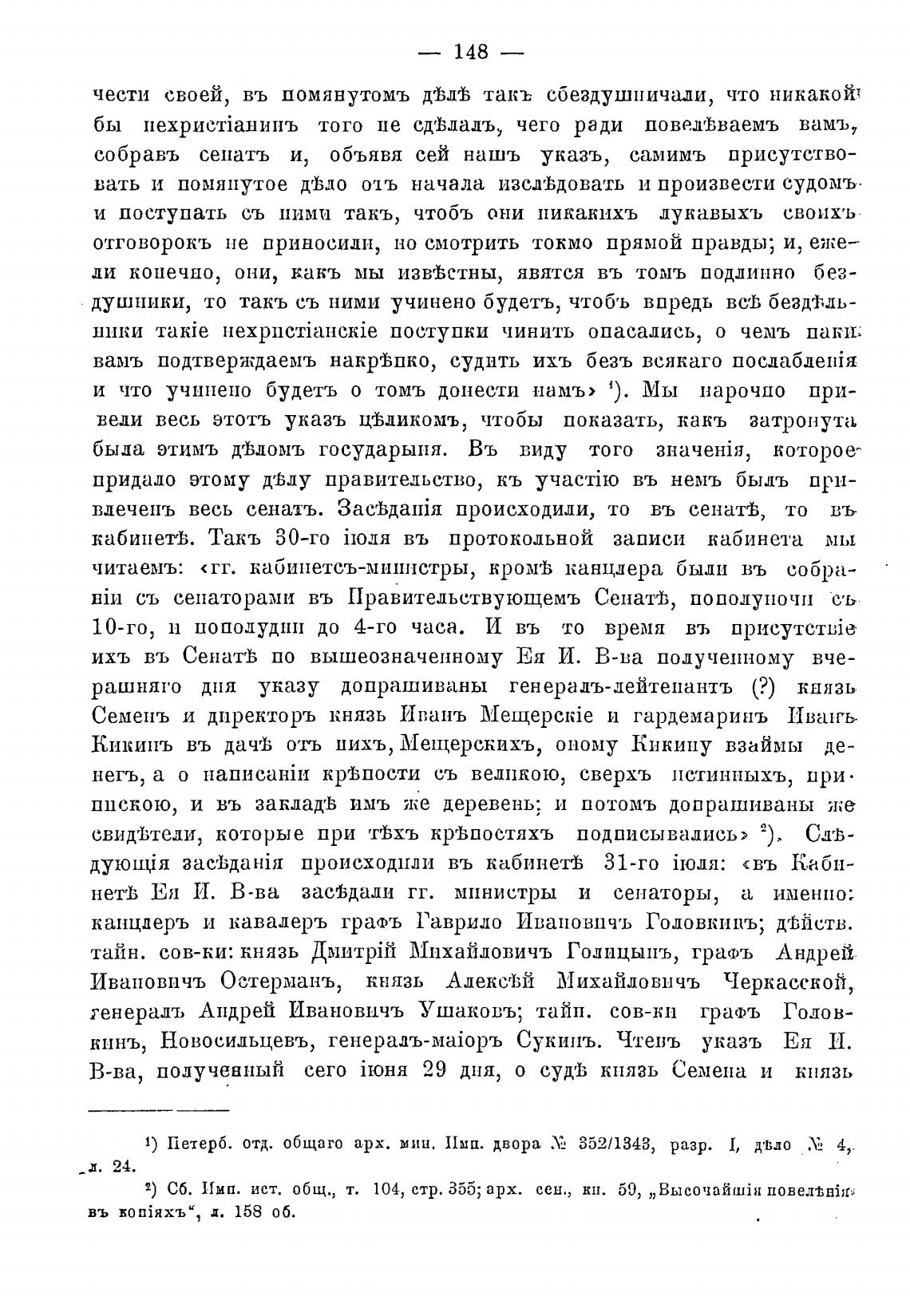 2) Сб. Имп. ист. общ., т. 104, стр. 355; арх. сен., кн. 59, „ Высочайайя