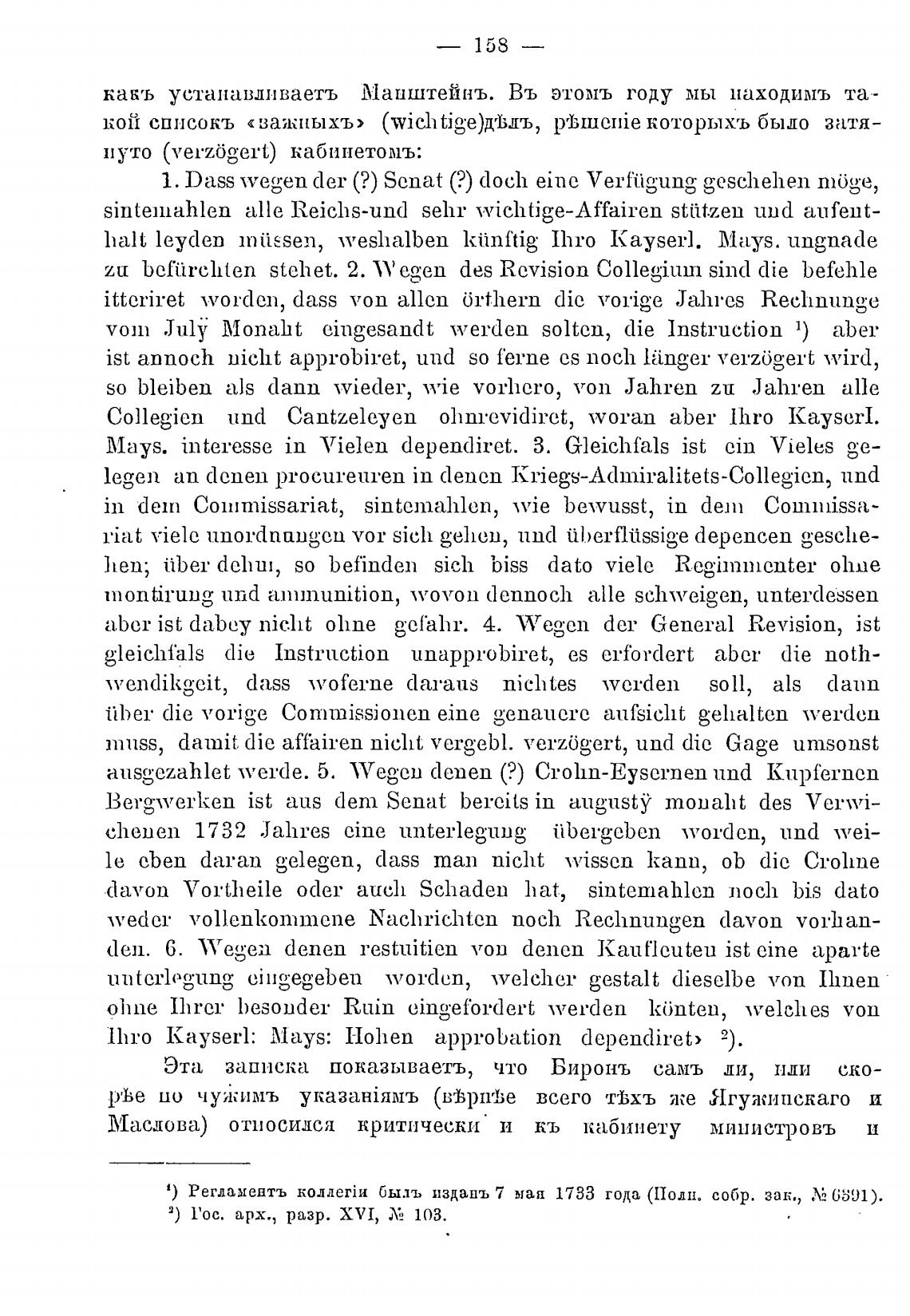 1) Регламедтъ быль издань 7 мад 1733 года (Полн. собр. зак., 6391).
