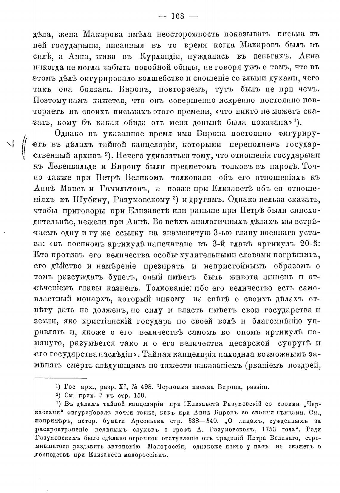 1) Гос арх., разр. Х 1, Х! 498. Черповыя письма Бирона, passim.