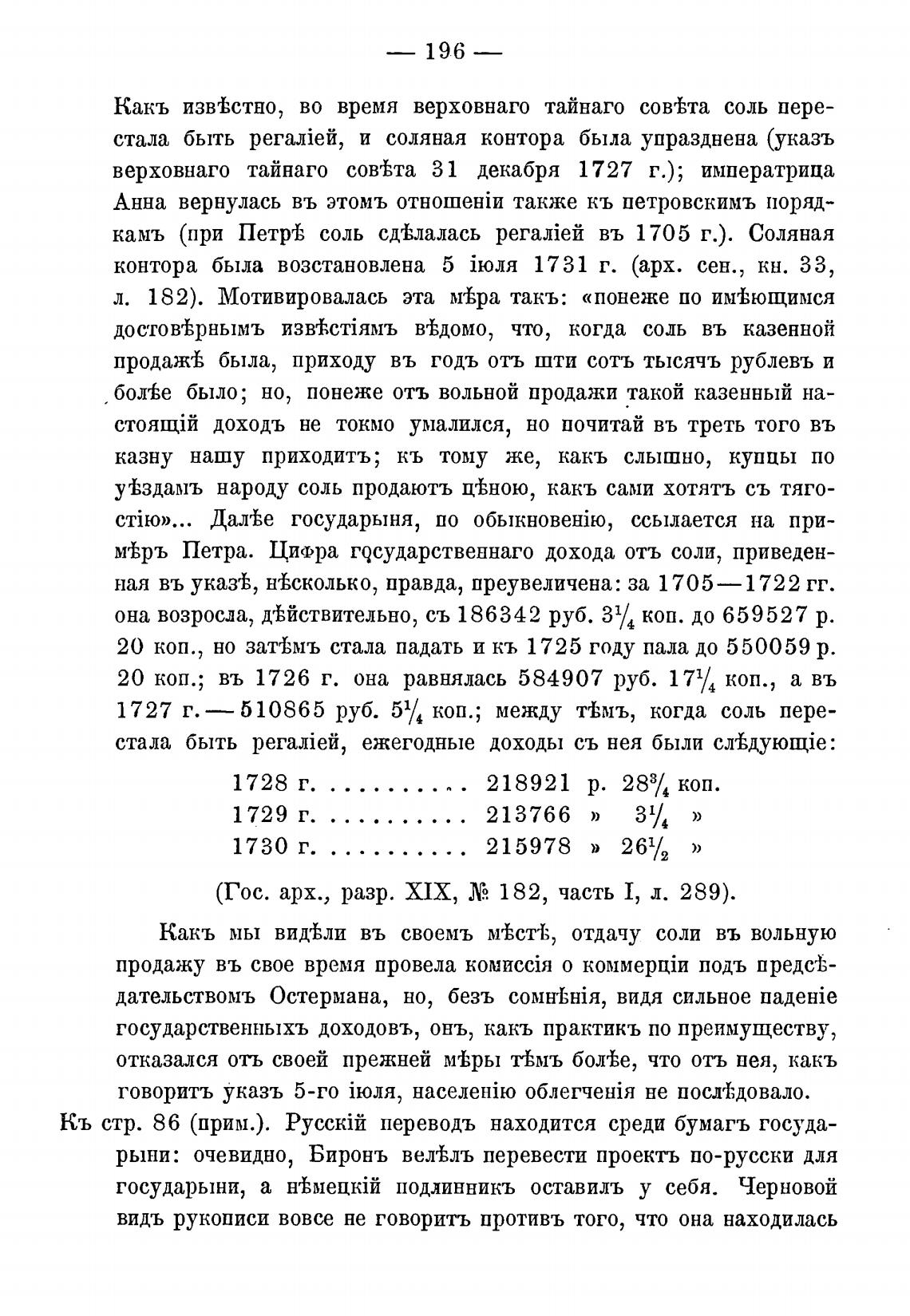 Какъ извркстно, во время верховнаго тайнаго сов±та соль пере-