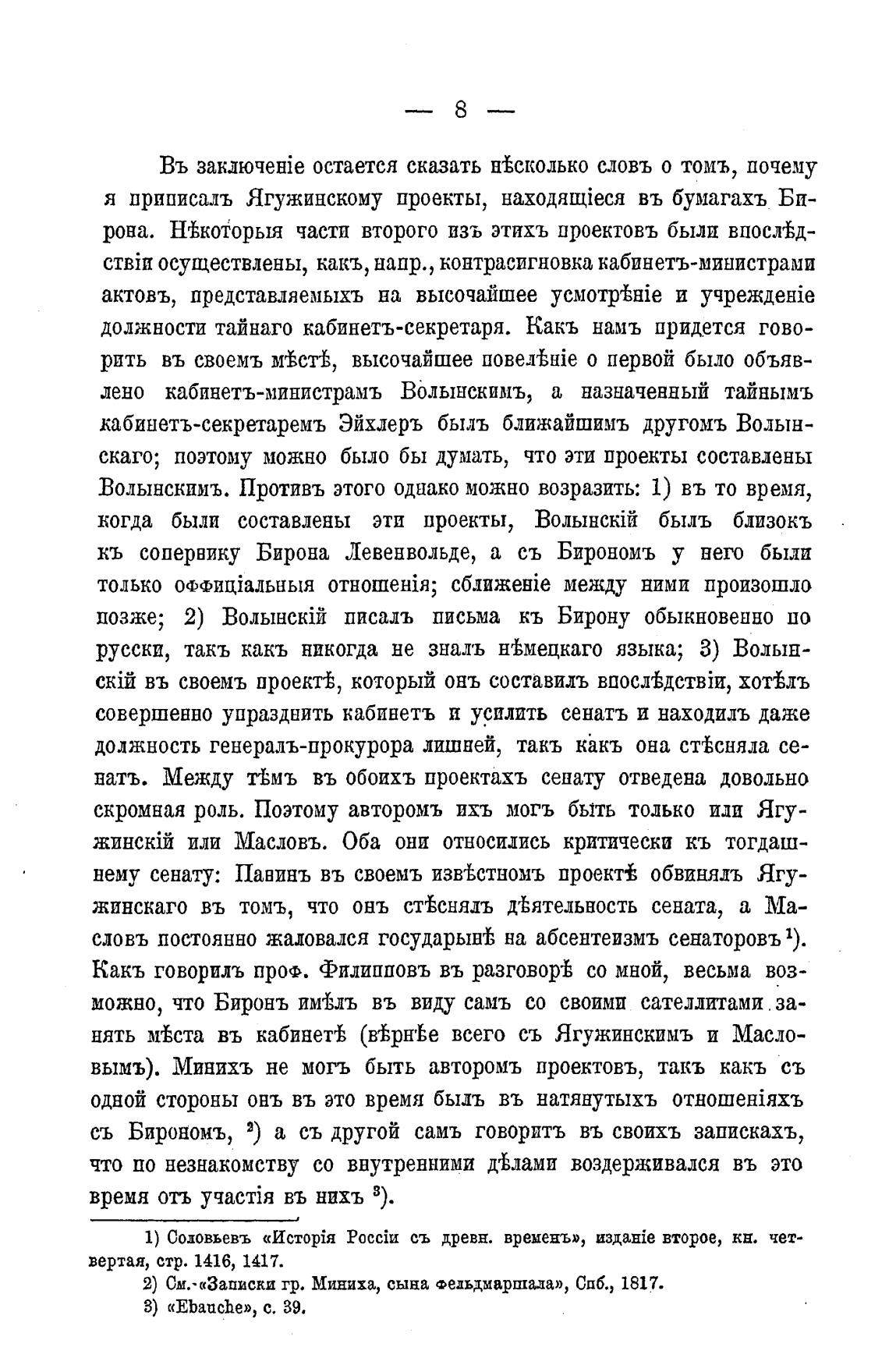 съ Бирономъ, 2) а съ другой самъ говорить въ своихъ запискахъ,