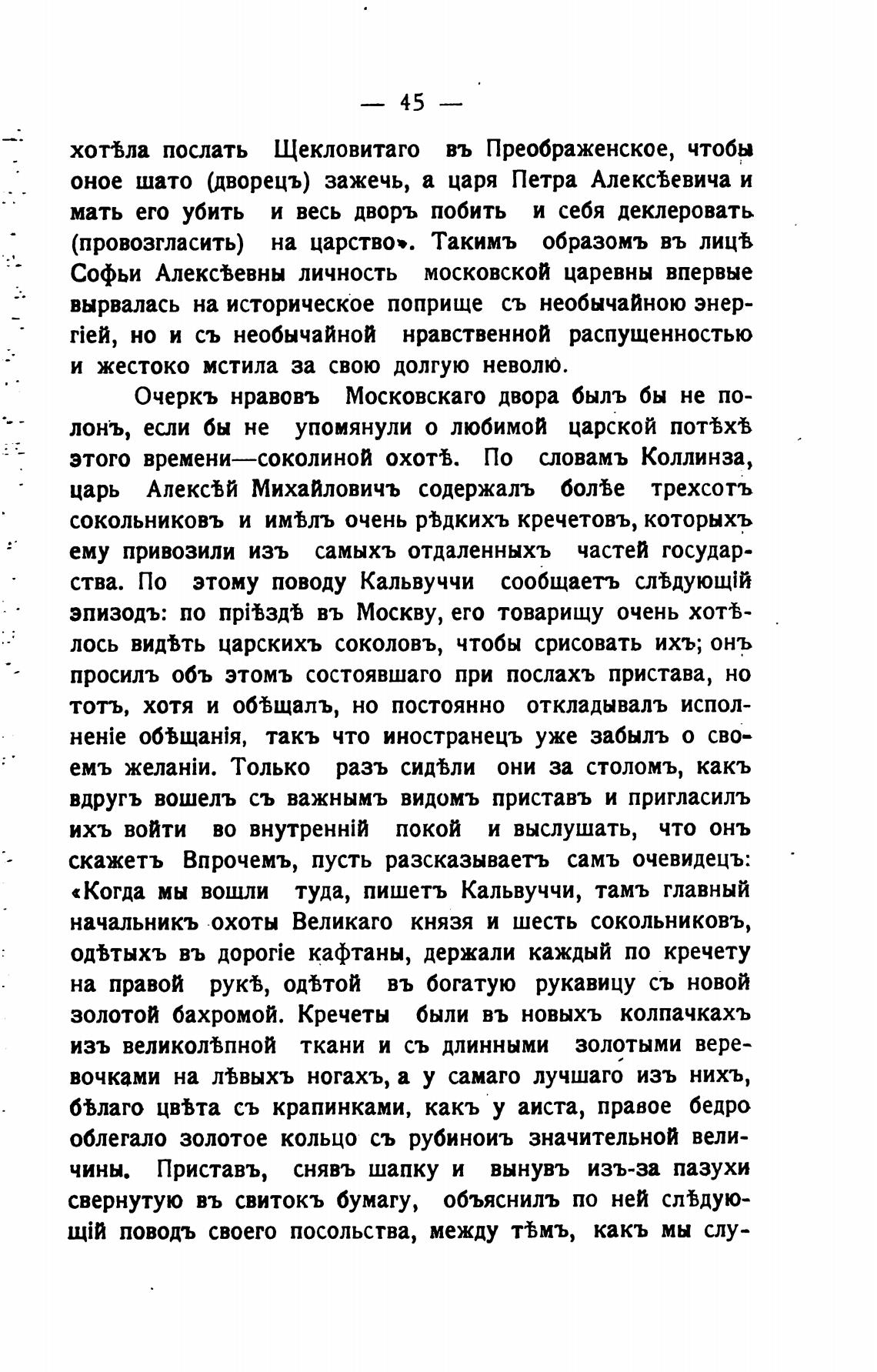 этого времени—соколиной охотЪ. По словамъ Коллинза,