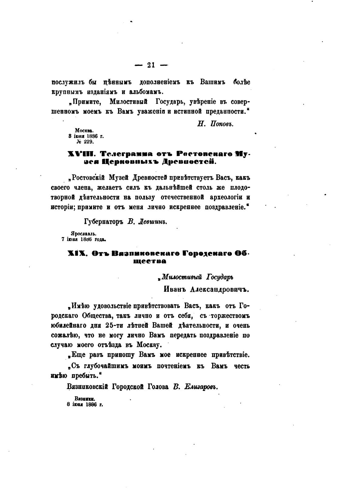 XVIII. Телеграяиа отъ Ростовсваго Му-