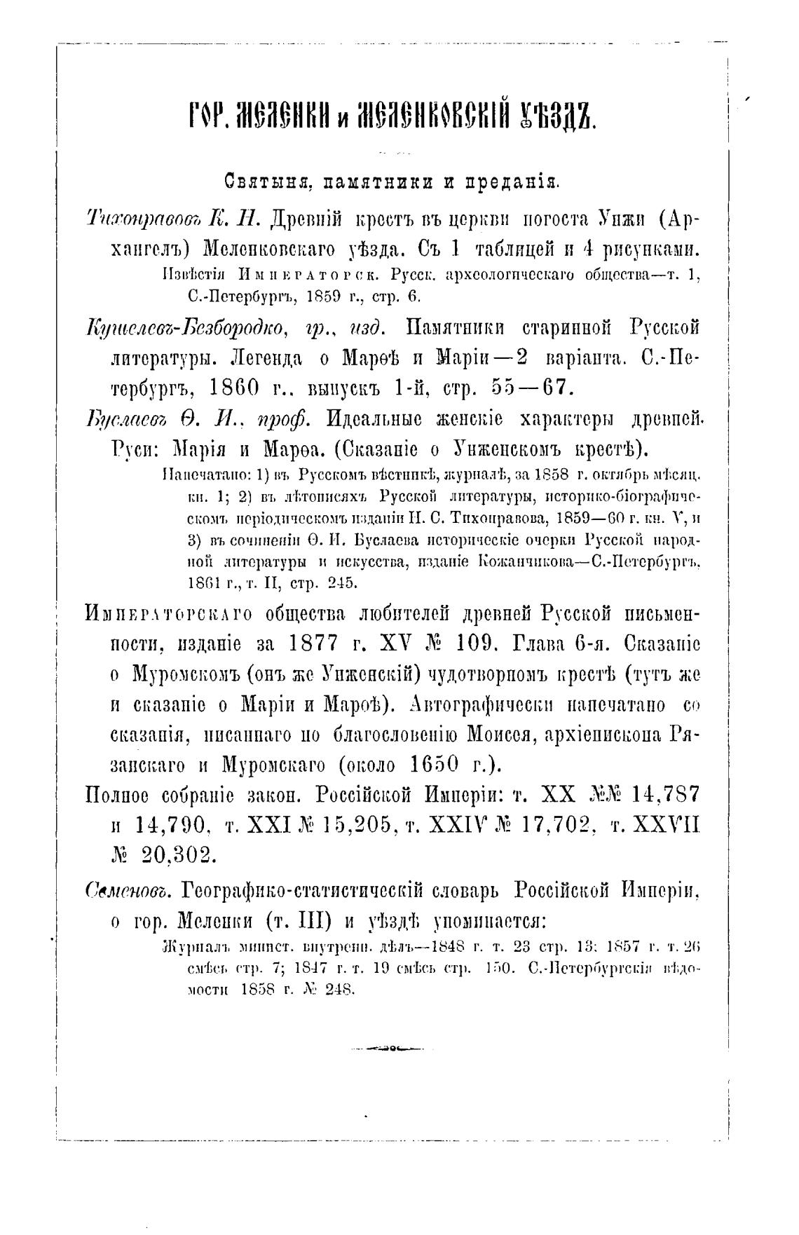о гор. Меленки (т. III) и упоминается: