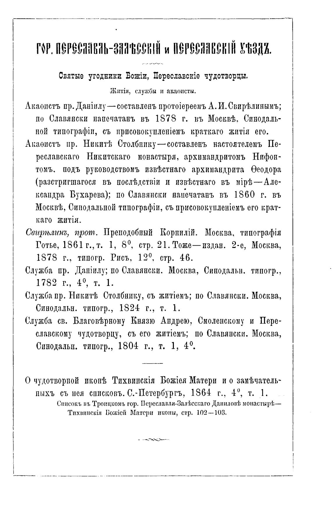 Список'ь въ Троицкомъ гор. Переслав.лл-За.Ч'Ксскаго ДаниловеЬ монастыр'ђ—