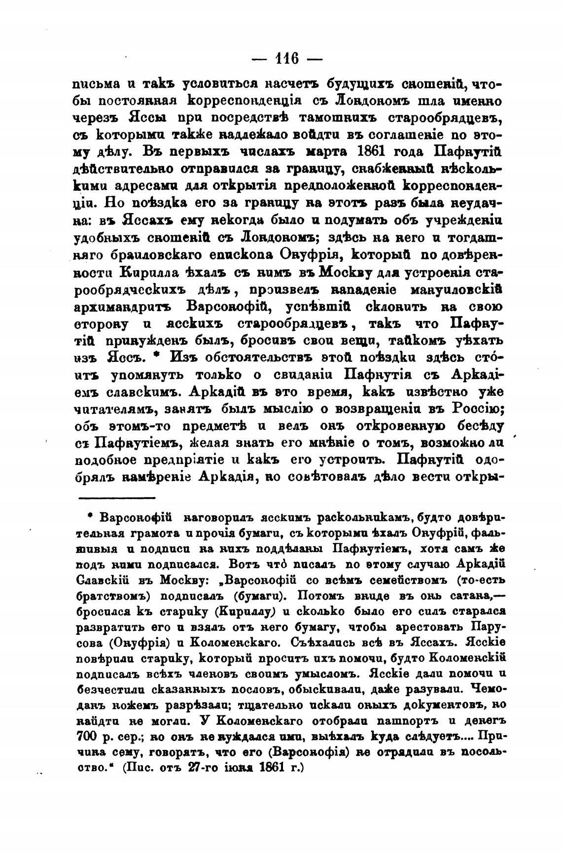 черезъ Яссы при посредств•ь тамотвихъ старообрядиевъ,