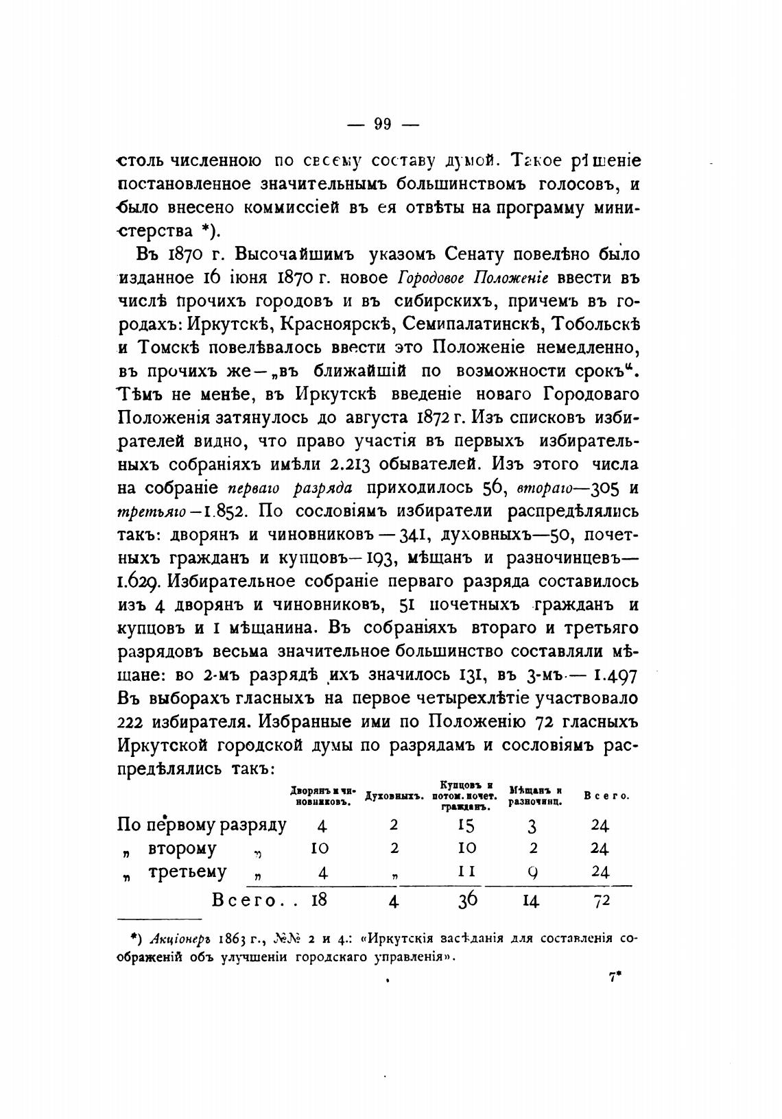 Иркутской городской думы по разрядамъ и рас-