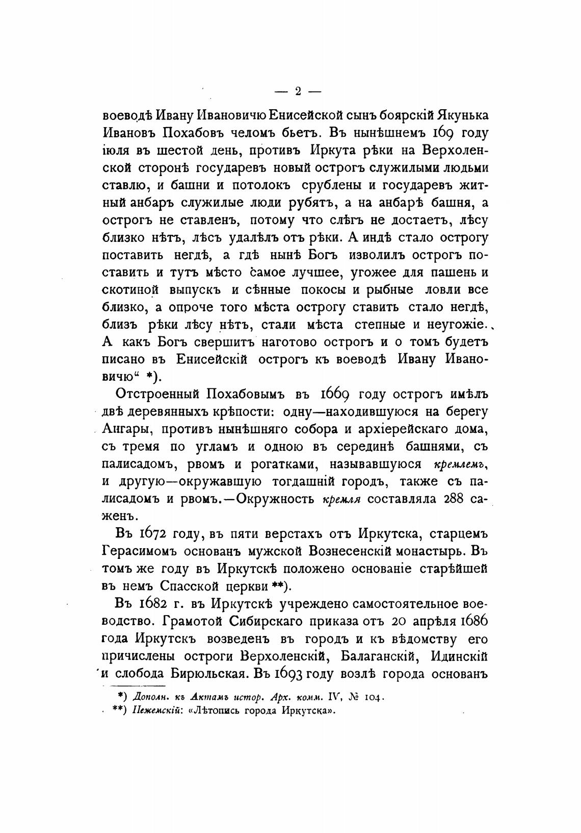 * * ) IIexeMckii•. «Л±топись города Иркутска».