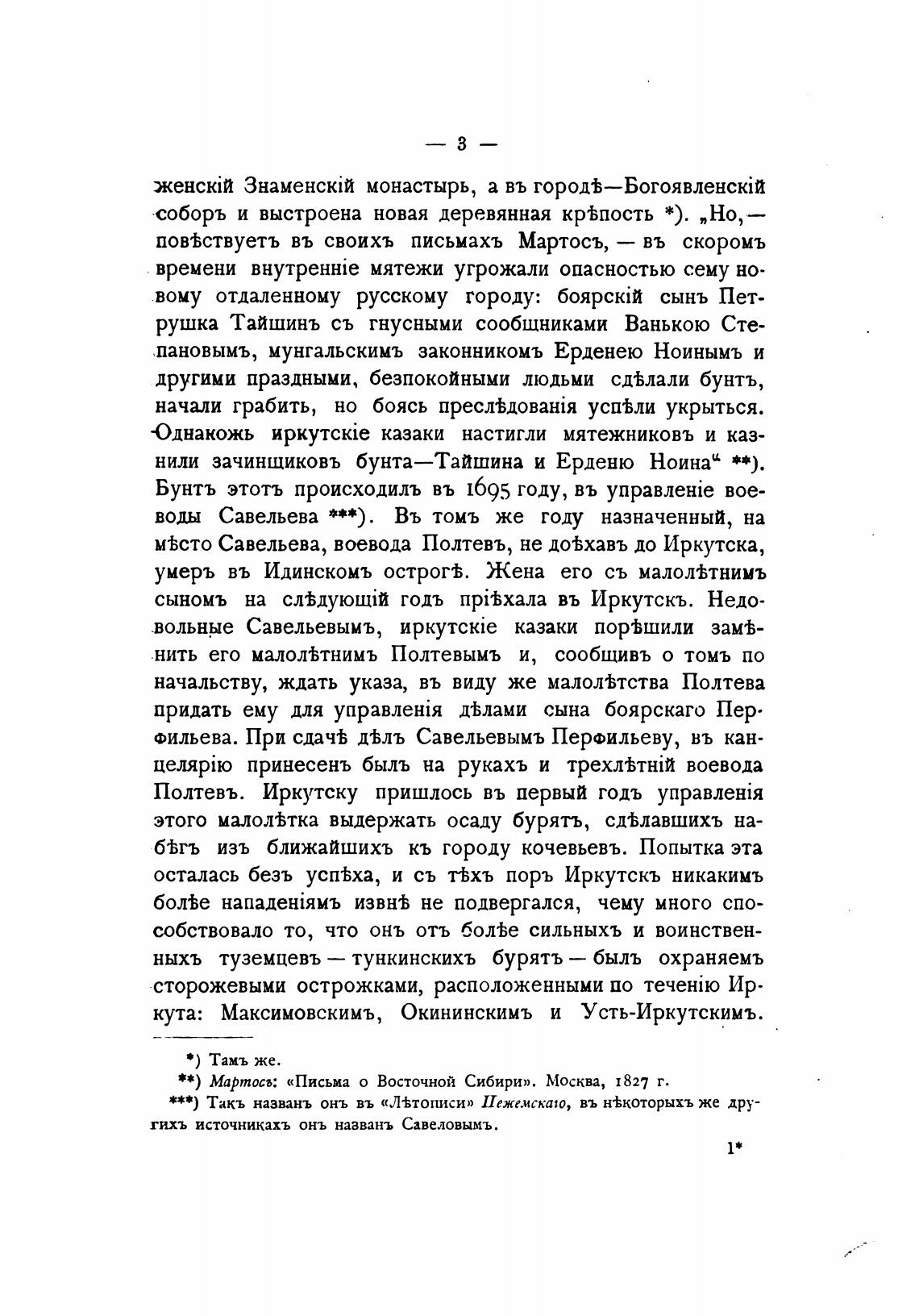 **) Мартосъ: «Письма о Восточной Сибири». Москва, 1827 г.