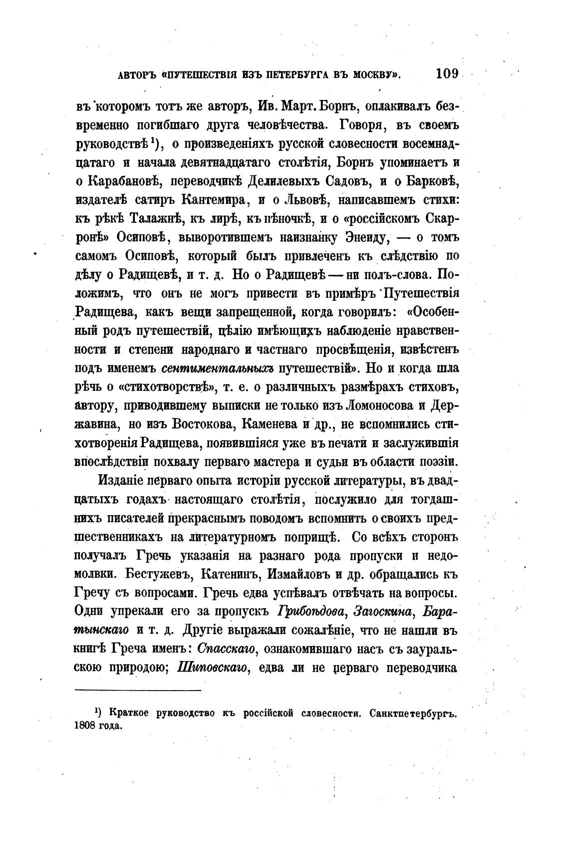 1) Краткое руководство кь poccihck0t словесности. Санктпетербургъ.