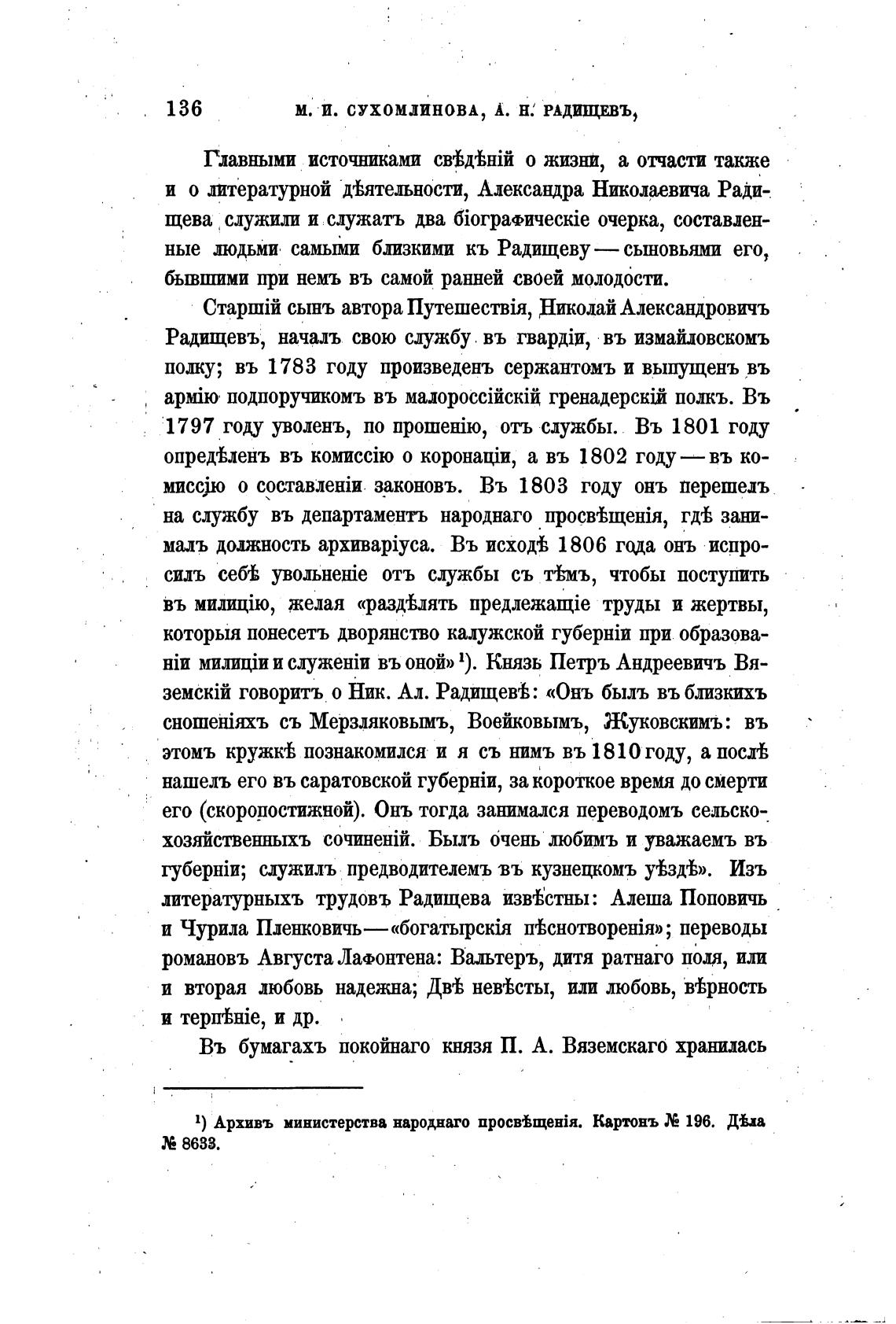 М. И. СУХОМЛИНОВА, А. Н. РАДИЩЕВЪ,