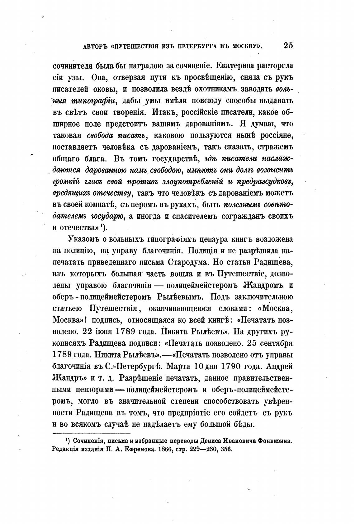 кописяхъ Радищева подписи: «Печатать позволено. 25 сентября