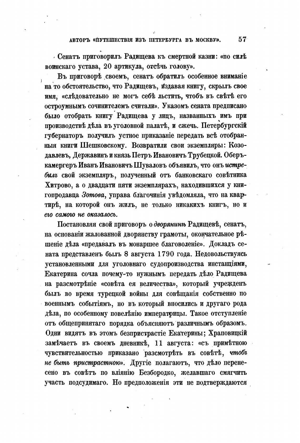 Сенатъ приговорилъ Радищева кь смертной казни: «по силгЬ