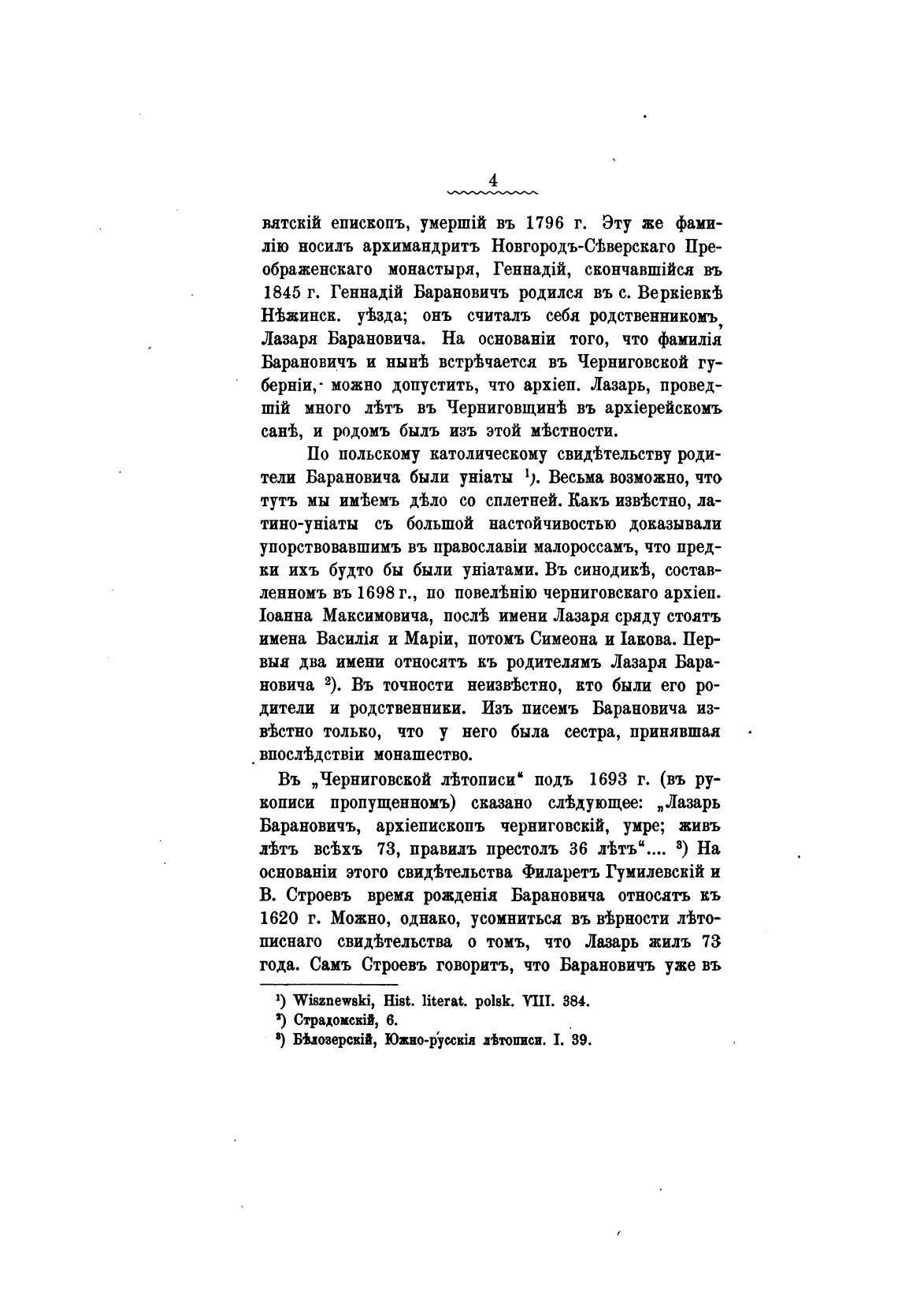В. Строевъ время Барановича относать въ
